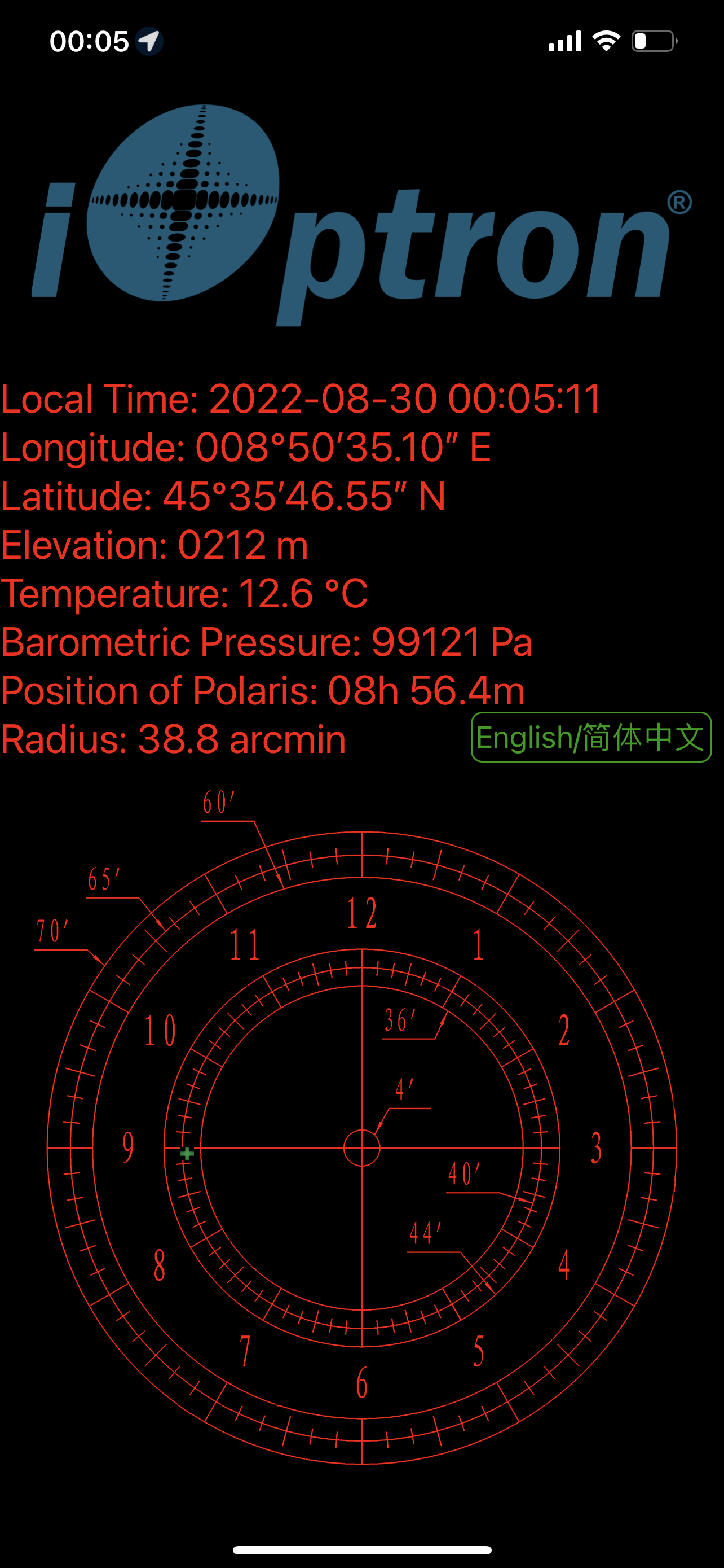 In base alla montatura che avete ci sarà un sistema ottico (cannocchiale polare) o digitale (iPolar, PoleMaster...) per trovare la giusta posizione. Io sono rimasto alla versione analogica: il cannocchiale polare iOptron è da utilizzarsi insieme alla app proprietaria che, rilevando data, ora e posizione GPS, mostrerà la posizione che deve avere la Stella Polare sul crocicchio interno al cannocchiale. Basterà aggiustare la posizione della montatura fino a replicare la sovrapposizione per essere abbastanza tranquilli di aver fatto un buon lavoro. Con altre versioni di cannocchiale polare le cose si fanno più complicate, ma non ho mai avuto bisogno di imparare la tecnica, quindi vi rimando agli sterminati tutorial che si trovano in rete.