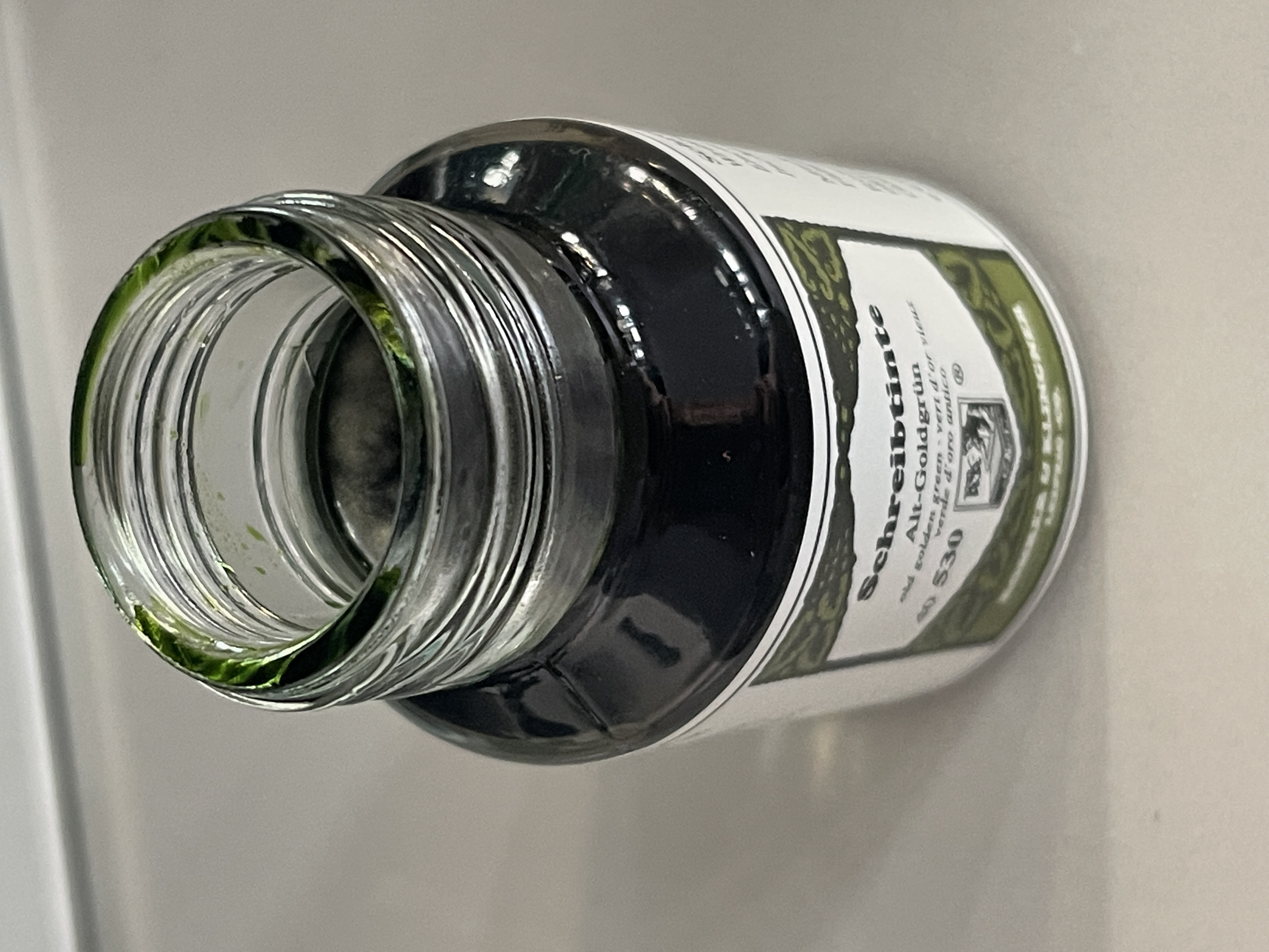 Davvero tremendo. Eh sì, sembra proprio muffa. A me capitò con un flacone di inchiostro vintage Osmiroid, se non sbaglio. Verde anche quello, ma sarà un caso.
