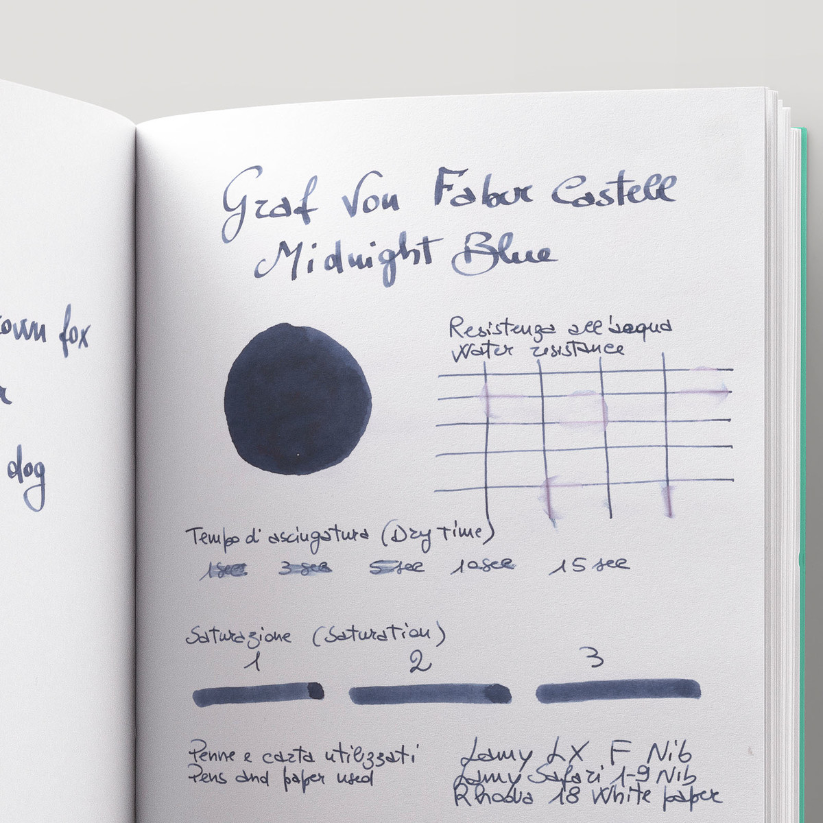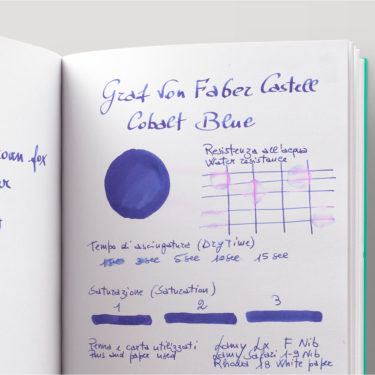 ultimamente mi è partita la fissazione nell'avere un inchiostro permanente nella mia collezione e ho notato che graf von faber-castell, sul sito, dichiara che una buona metà dei suoi inchiostri sia indelebile. da felice possessore del cobalt blue sono stato subito felice di trovarlo sulla lista di quelli indelebili, allorché vado sul noto sito romano (che fornisce prove per ogni inchiostro) e ho scoperto che quasi tutti gli inchiostri dichiarati indelebili, in realtà vanno via anche con qualche goccia d'acqua