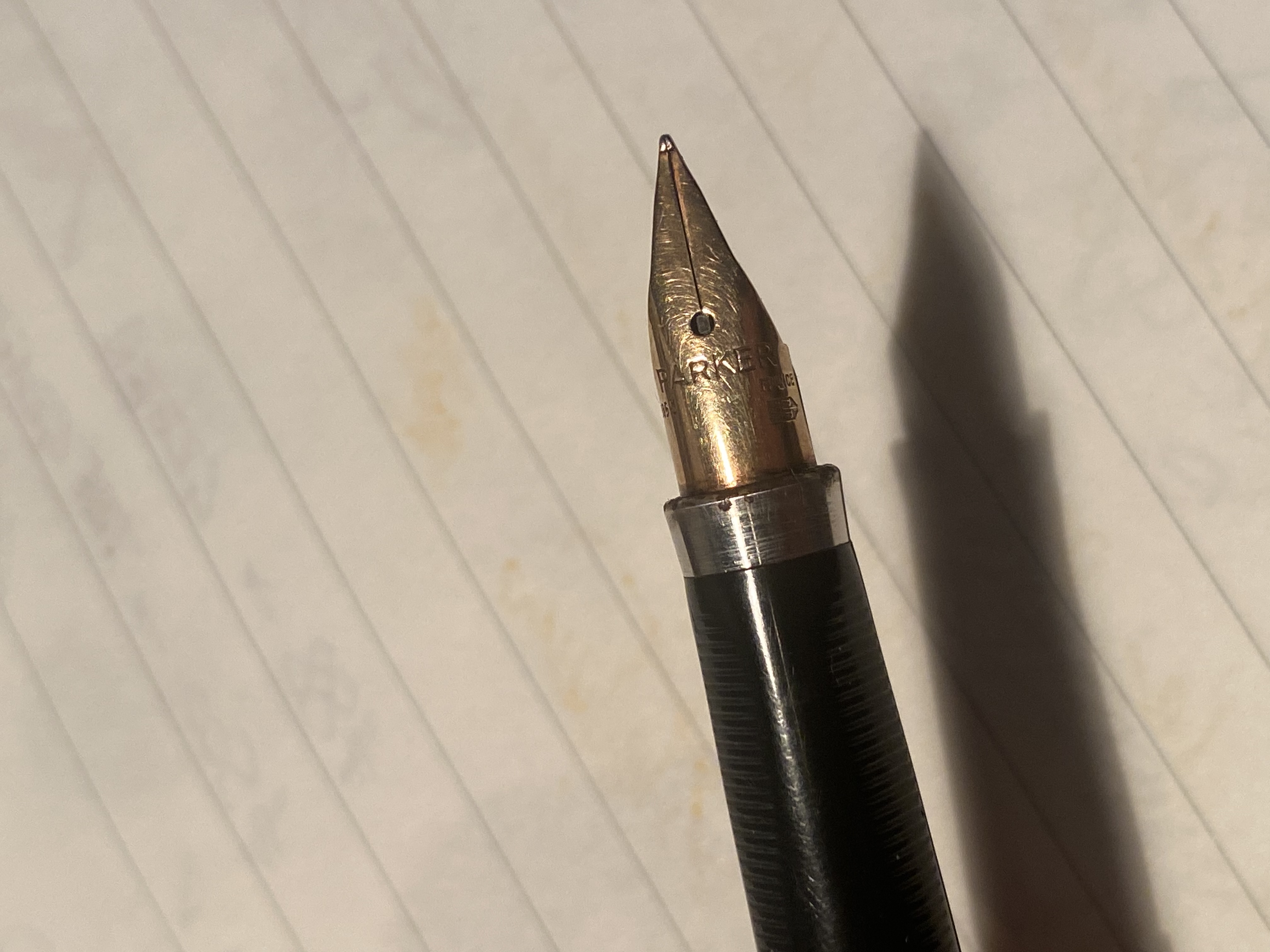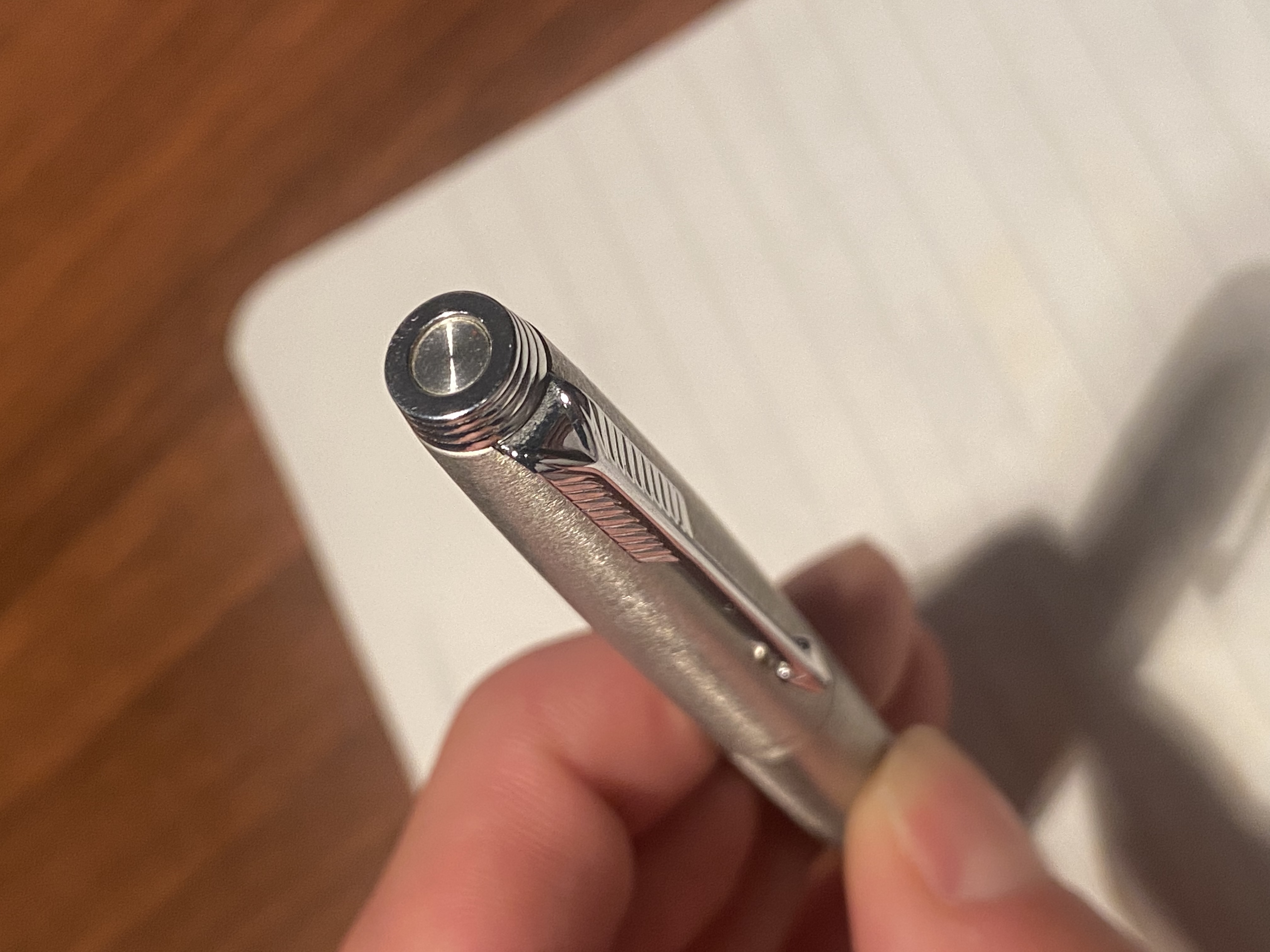 In base alle caratteristiche dovrebbe essere fatta dopo il ‘74 (manca scala graduata vicino al pennino) ed il ‘79 (quando parker inizia ad incidere il logo sopra la scritta made in france).