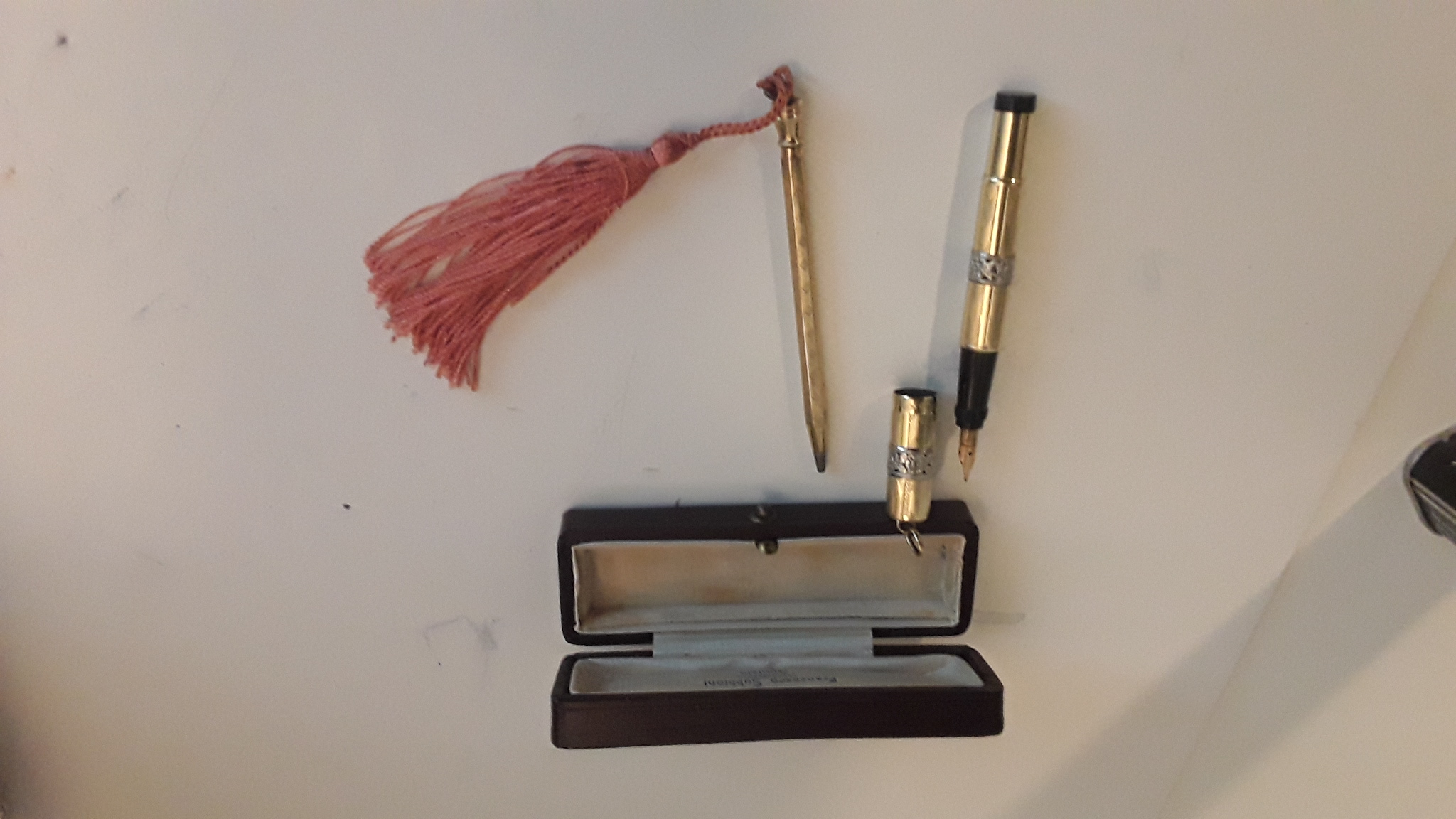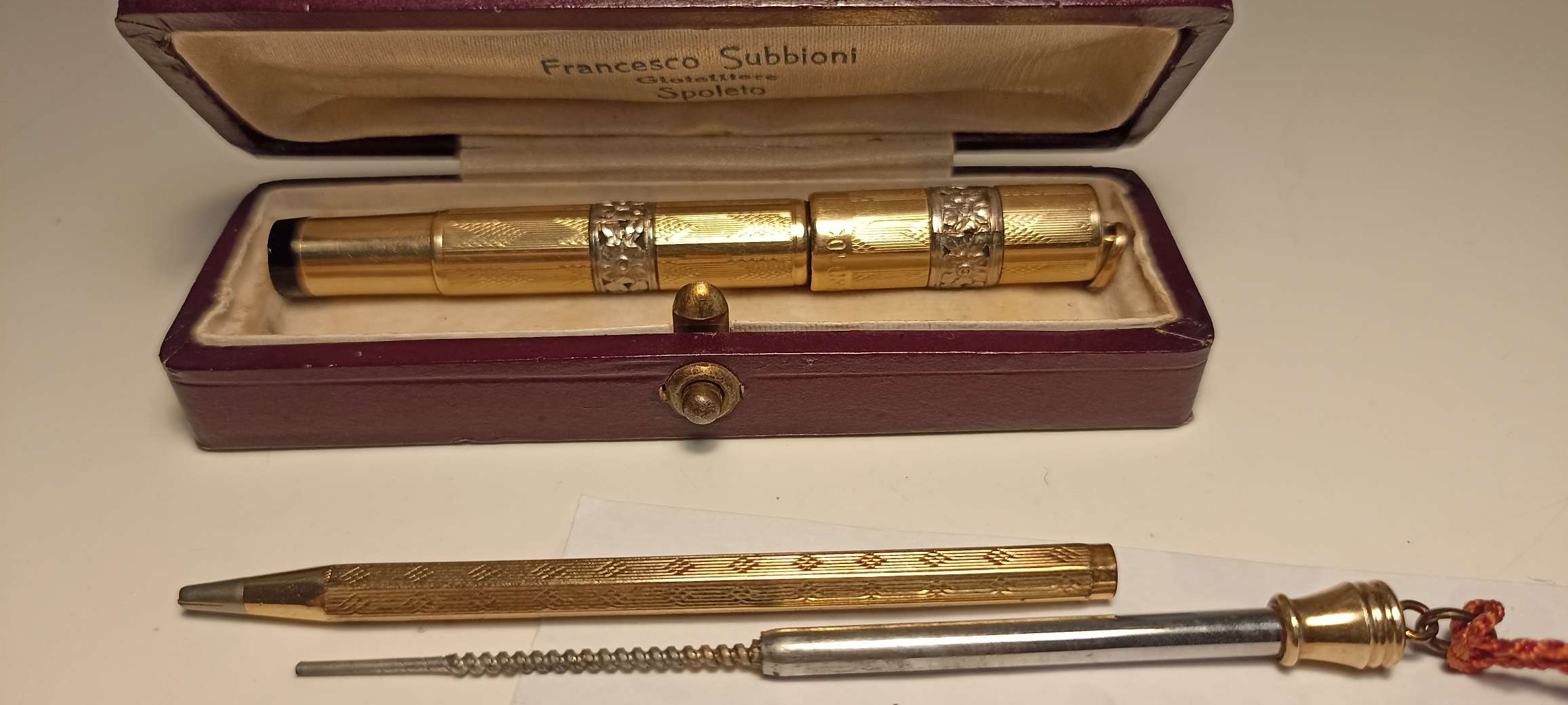 Grazie alle informazioni qui riportate sono riuscito a datarle (1920/1930) e ad attribuire il portamine, non marchiato, alla Casa stessa. Compare infatti identico in un catalogo riprodotto. Vorrei chiedere, nell'occasione, se qualche partecipante sia in grado di darmi qualche consiglio in quanto vorrei disassemblare senza far danni la penna che presenta qualche impuntamento nella fuoriuscita del pennino. Sul cappuccio della penna compare il logo VEM inscfitto in una losanga.