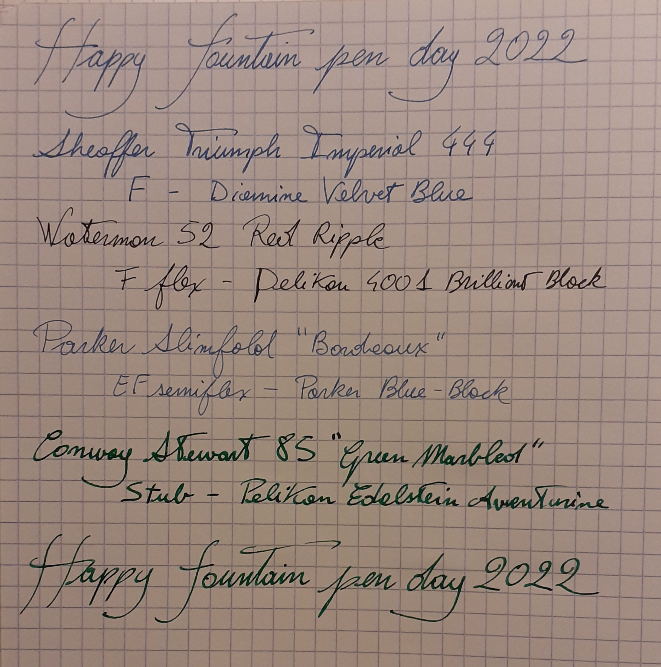 Scritto con le penne che ho cariche al momento. Mostratemi anche le vostre "pen in use today"