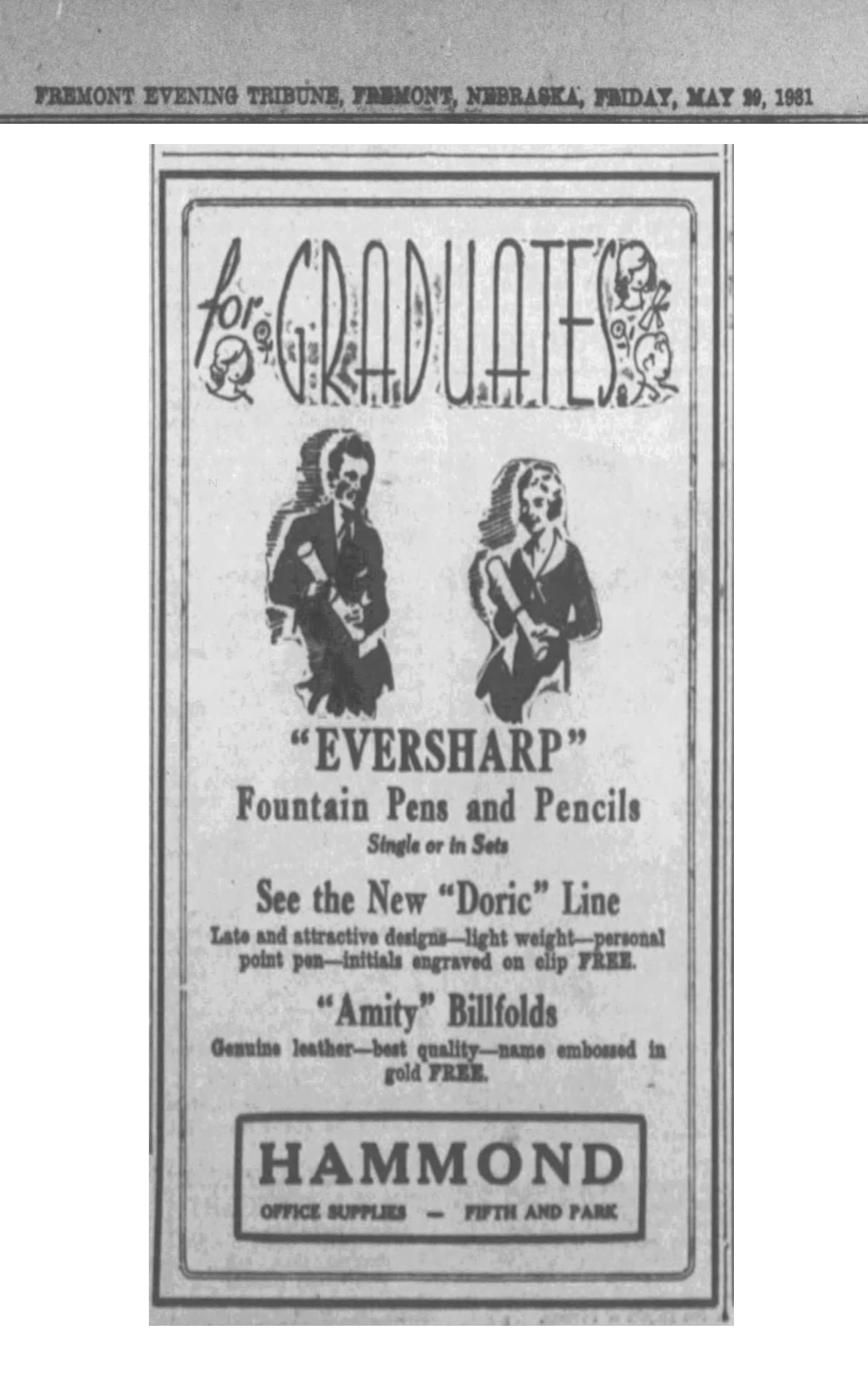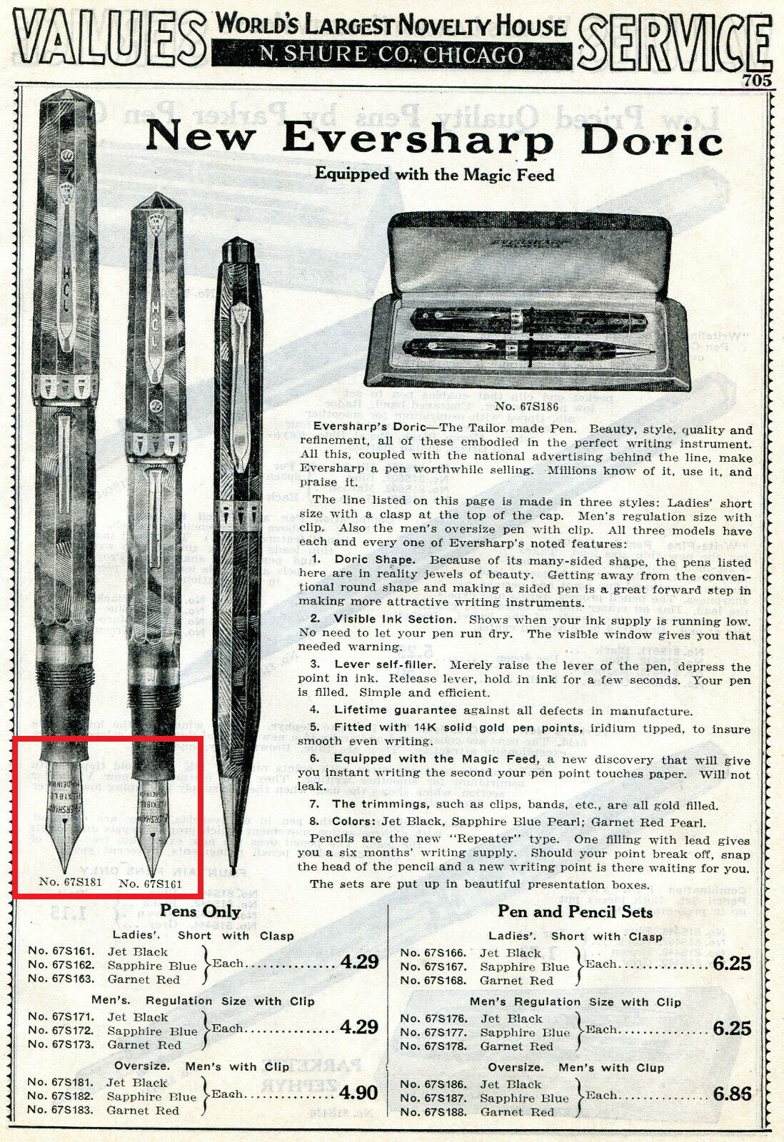 Passerà poco meno di un anno per giungere alla commercializzazione della nuova linea Doric, il cui lancio avvenne [@Simone] in tempo per gli acquisti di “diploma” (graduation) di fine anno scolastico/laurea, già nel maggio del 1931.
