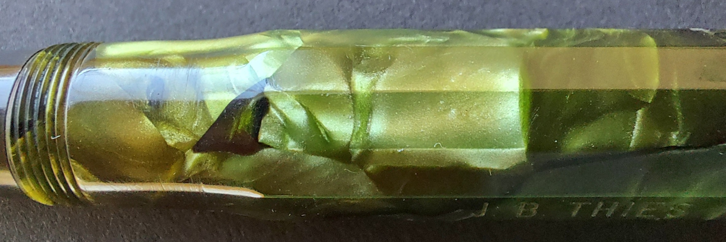 Pur essendo una icona di stile assoluta tra le stilografiche dell’epoca d’oro 1880-1950 (il che impietosamente denuncia l’approssimazione e l’insensatezza, il tirare-a-campare col vivere-di-rendita per andare-sul-sicuro di troppa parte della moderna produzione), la Doric oversize è anche uno strumento scrittorio di assoluta eccellenza, che si colloca insospettabilmente ai vertici anche per maneggevolezza: è grande (anzi grandiosa ;) ) ma non è “grossa”, è mirabilmente bilanciata ed è perciò forse l’unica stilografica oversize che mi sentirei di raccomandare anche ad una mano piccola (lo ricordo: pesa solo una ventina di grammi con cappuccio calzato).