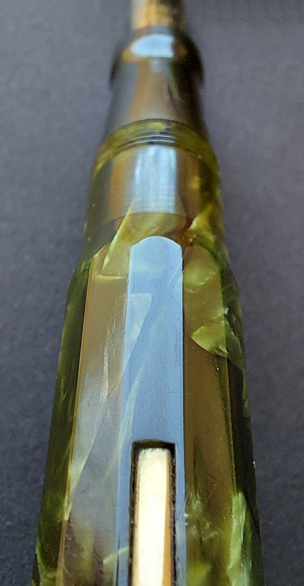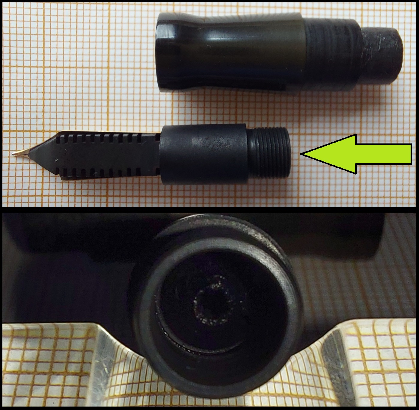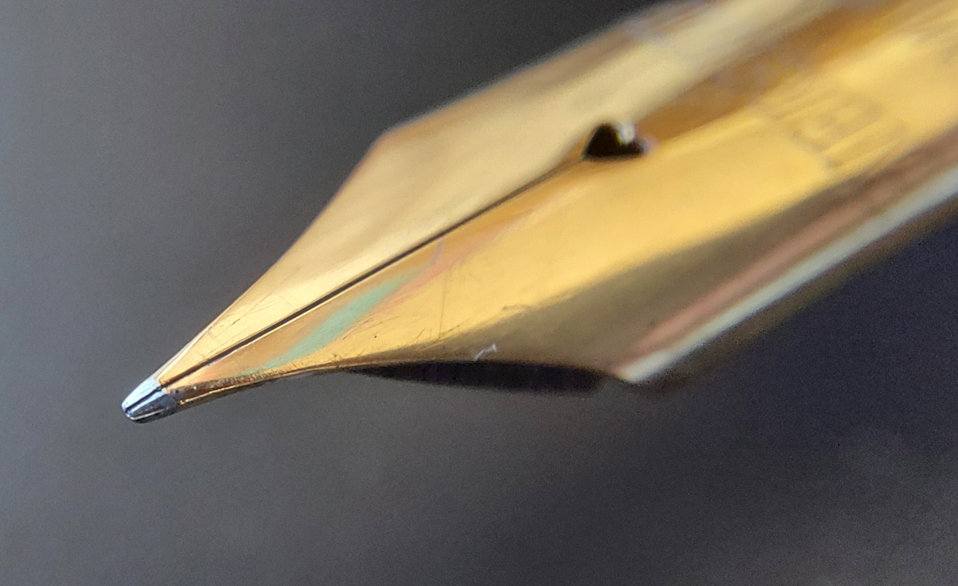 Viste le eccellenti condizioni dell’iridio, la penna può scrivere egregiamente col pennino in reverse (dal lato secco), anche in velocità, lasciando sulla carta un segno EF.