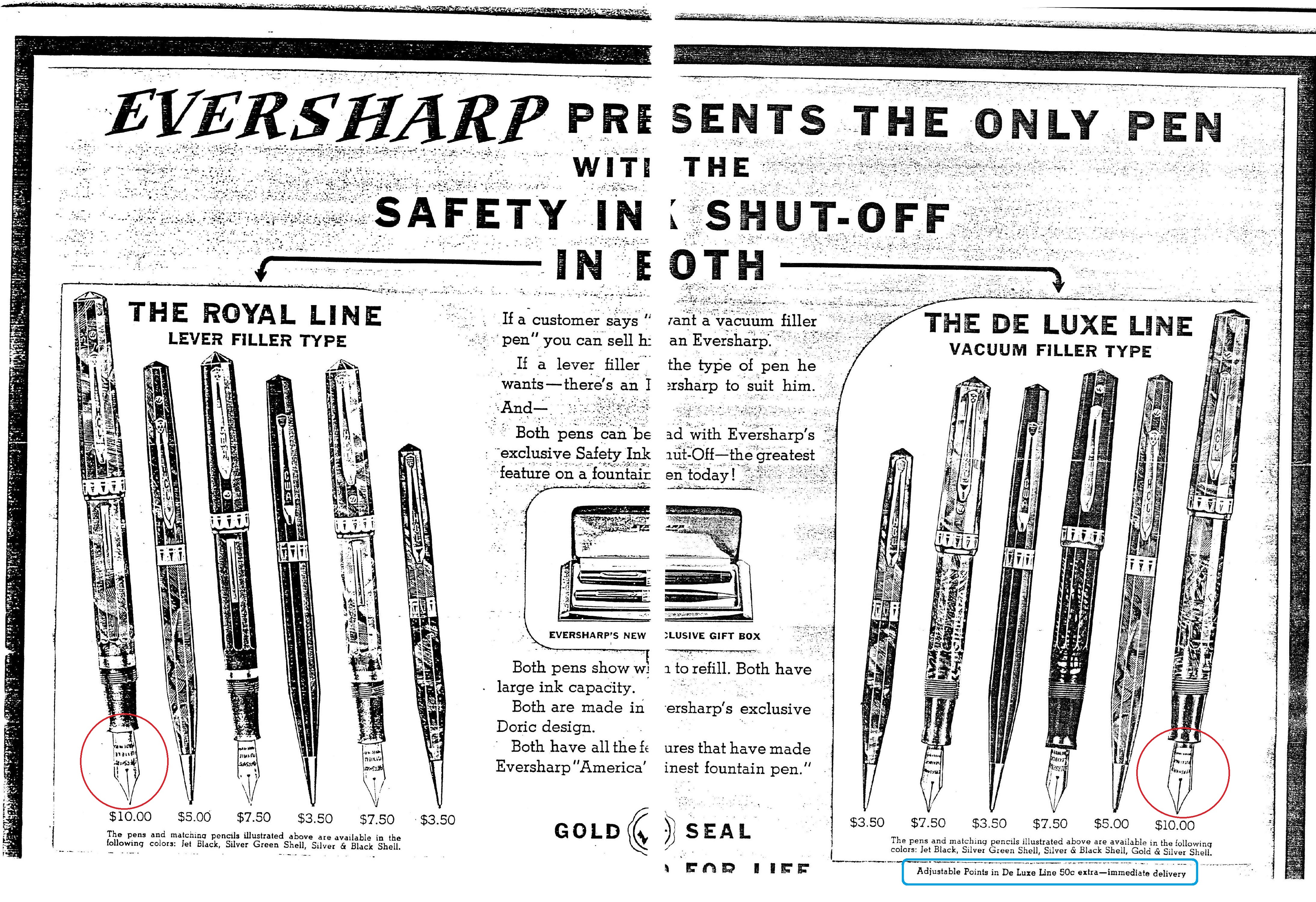 Come si apprende dal catalogo Eversharp del 1932 (fonte PCA), la nuova linea comprendeva 4 modelli (che a ben vedere sarebbero 5), che la Casa definisce “styles”, a fronte della loro indubbia diversità: