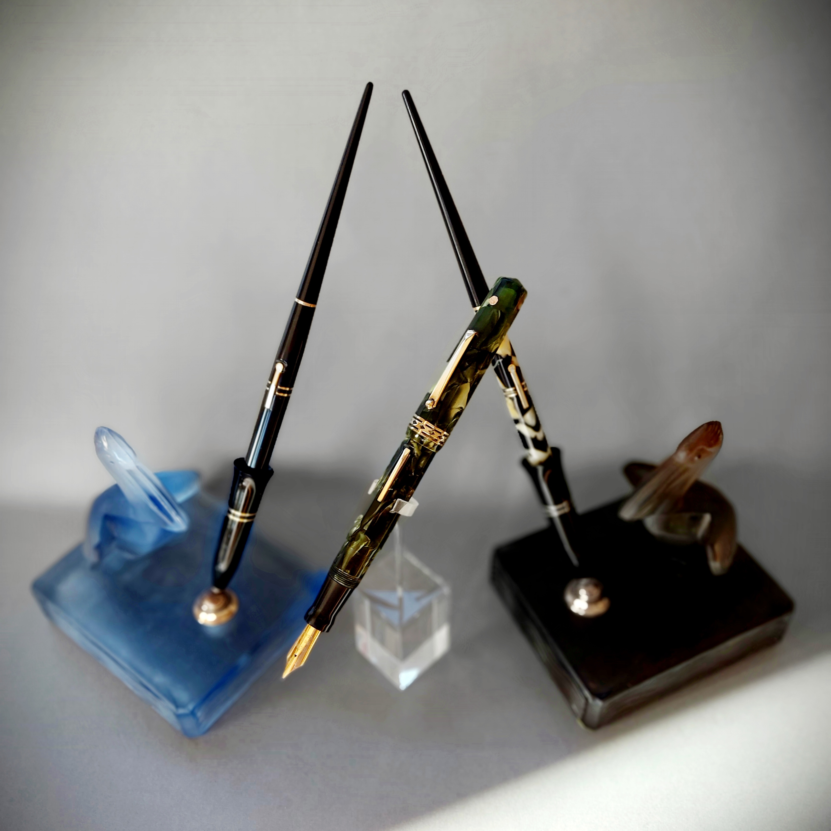 mi aveva punto vaghezza di affiancare loro anche nel mondo reale una delle meravigliose stilografiche “colorate” che si trovano artisticamente ritratte nell’onirica eliocromia dei fratelli Gorsky.