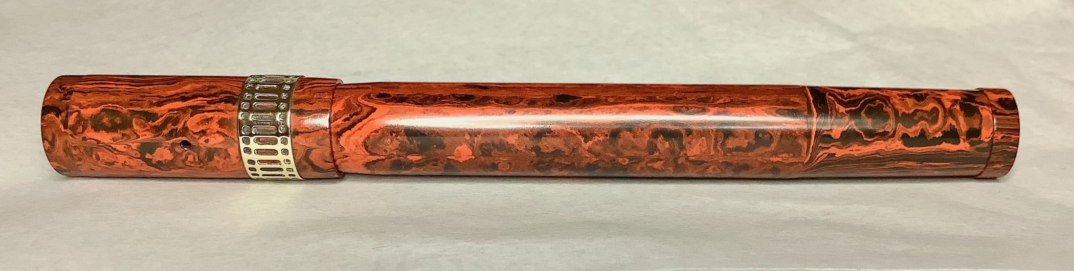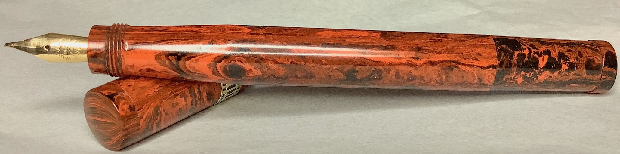 Qui da noi non andava certo per la maggiore (come in Francia) l'ebanite "mottled" come questa, specie dopo che era uscita la "rippled" della Waterman verso la fine degli anni Venti (per non parlare della celluloide).
