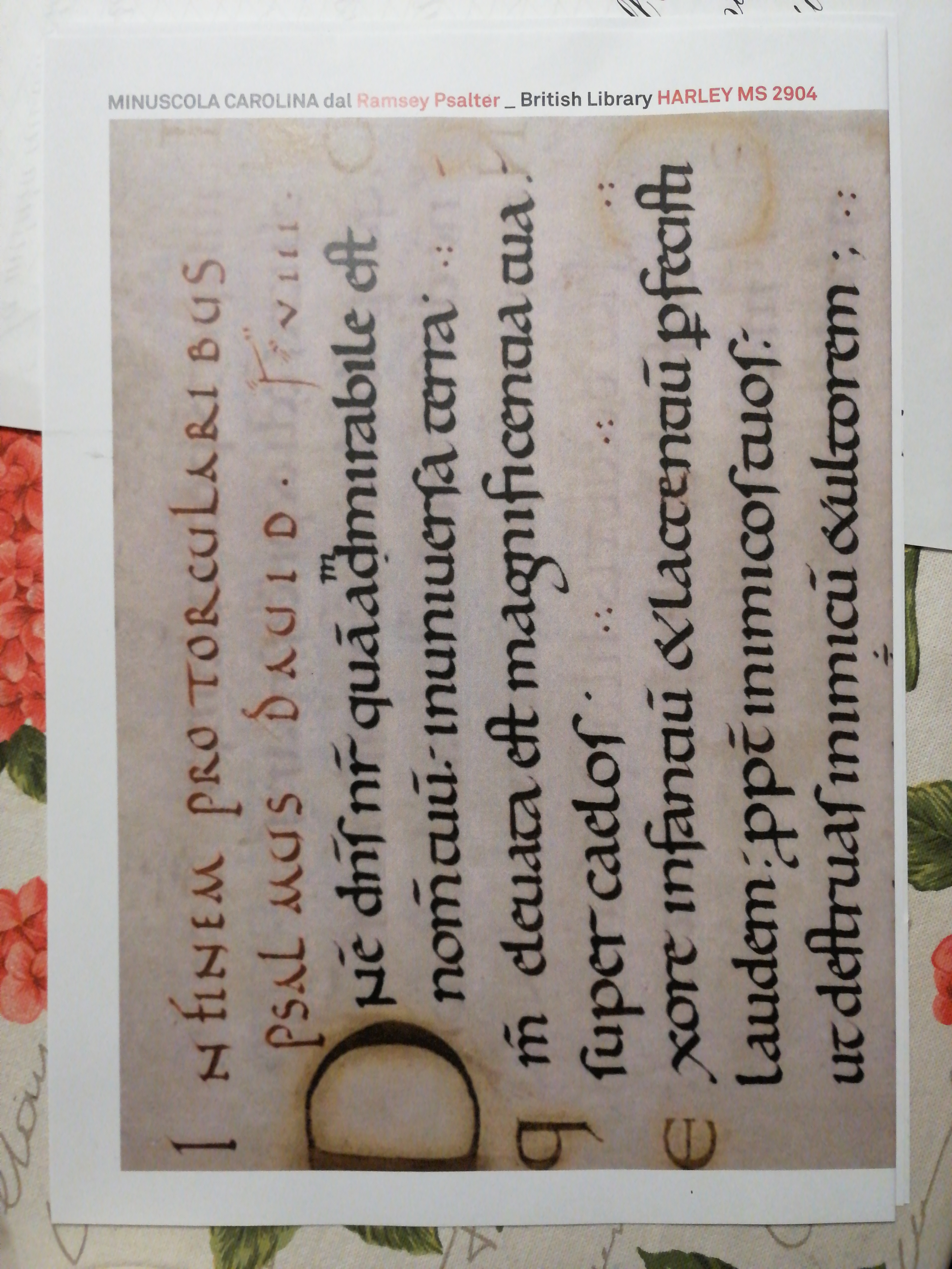 La Carolina dal Ramsey Psalter che ho studiato io non chiudeva le gambe delle m-n come nell'onciale, ma invece scendeva verticale.