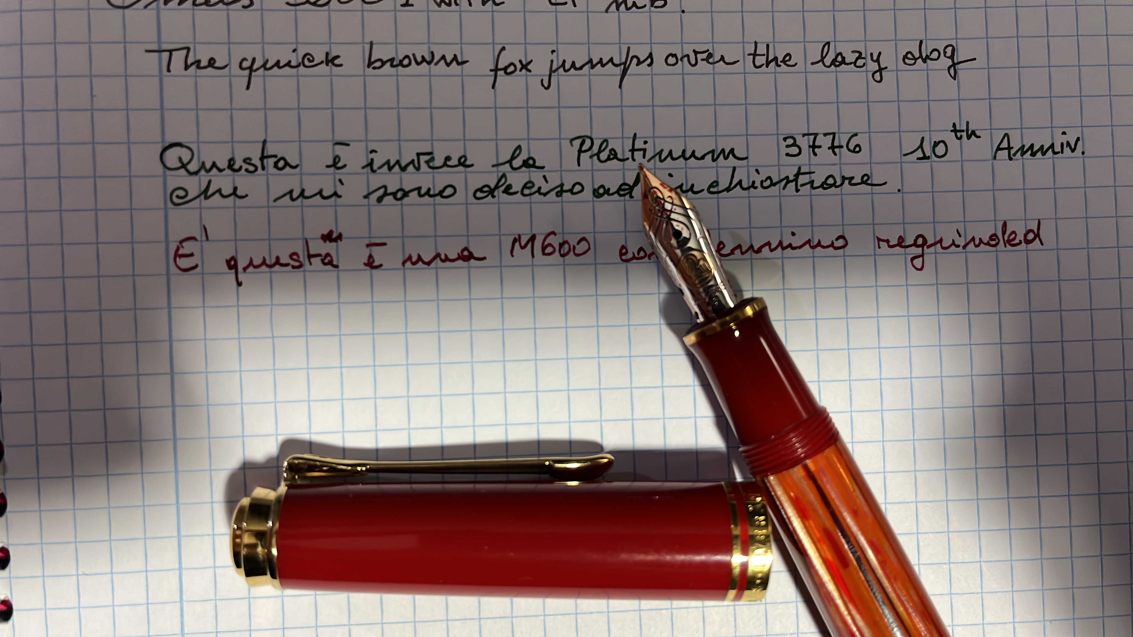 Comunque ci sono le eccezioni, proprio stasera stavo testando alcuni pennini dal tratto sottile e quello più sottile è stato un F Aurora (su cui comunque c’era l’inchiostro più stitico). Ecco alcune foto (i quadretti sono da 3mm)