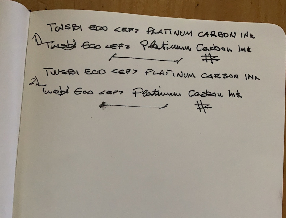 Il Platinum Carbon Ink è uno di quelli consigliati per contenere il tratto, anche se non mi ha mai fatto impazzire. L’alternativa n.1 è, secondo me, l’X-feather di Noodler’s. Ti azzera anche la variabile “carta” lasciandosi assorbire più lentamente anche da carte porose e inadatte.