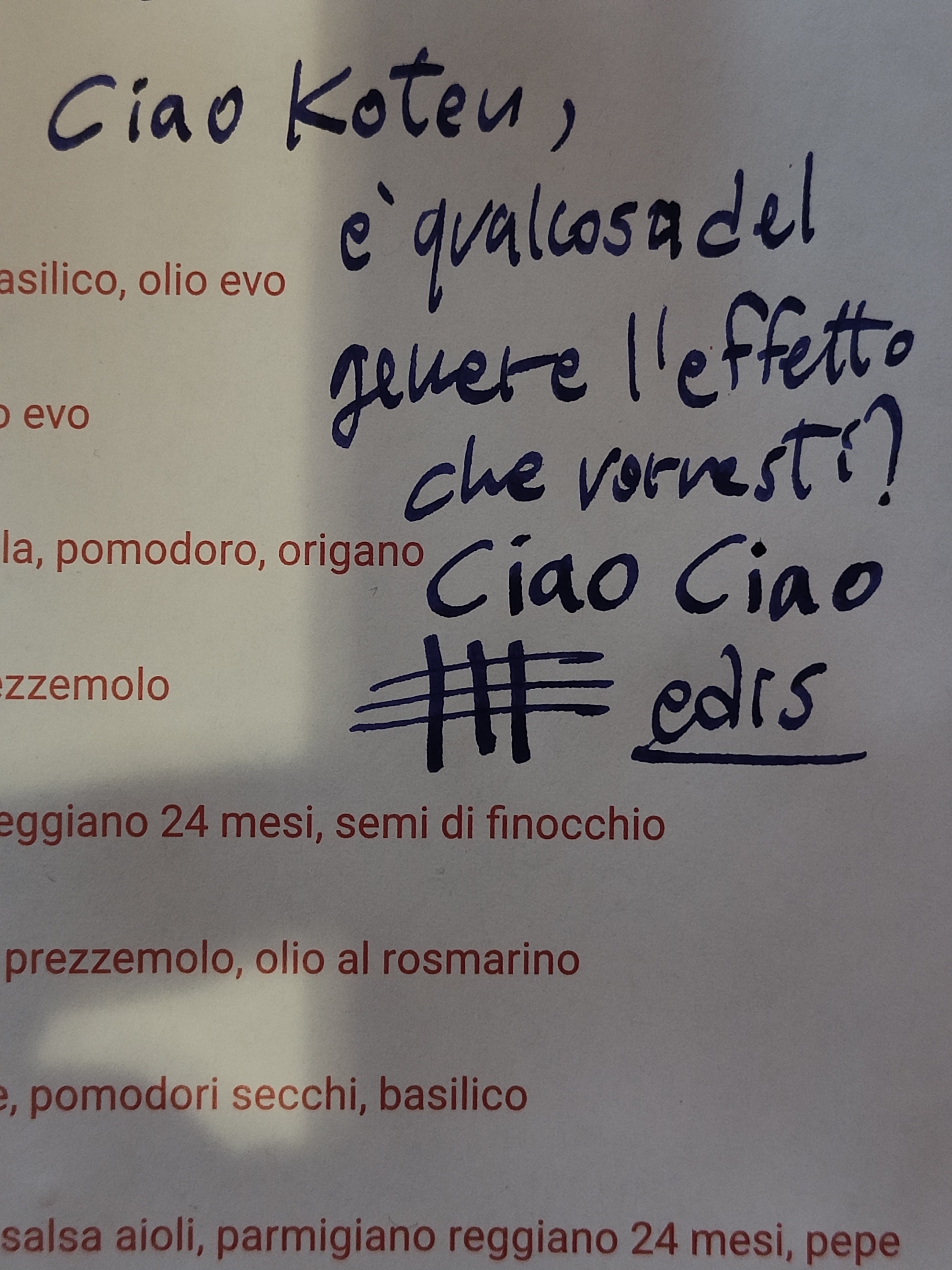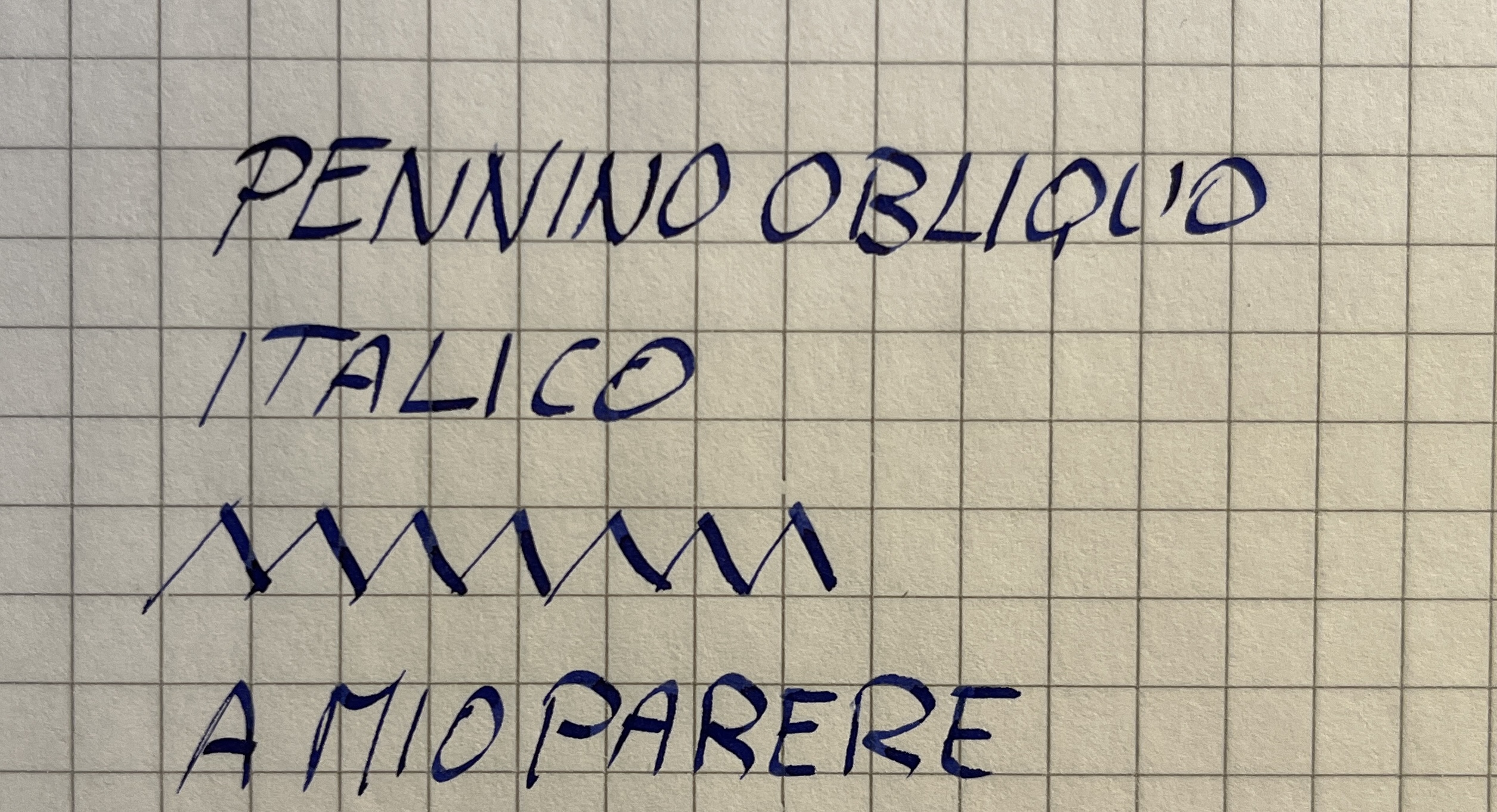 La mia curiosità è se per ottenere l'effetto desiderato (che posso solo immaginare da una breve conversazione con Alessio a Bologna, ma che forse vuole condividere) non sarebbe più utile un italico obliquo, che darebbe una differenza tra tratto orizzontale largo e verticale sottile molto maggiore?Koten90 ha scritto: ↑martedì 13 dicembre 2022, 7:03 Dopo averci studiato un po’, mi son reso conto che per avere l’effetto che a me piace sono costretto a impugnare la penna di traverso (col pennino che punta verso sinistra) e mi è piuttosto scomodo. Ho scoperto che in realtà stavo cercando un Architect e pensavo di riuscire ad arrangiarmi. Utilizzato come stub ha un tratto troppo abbondante per la mia scrittura.