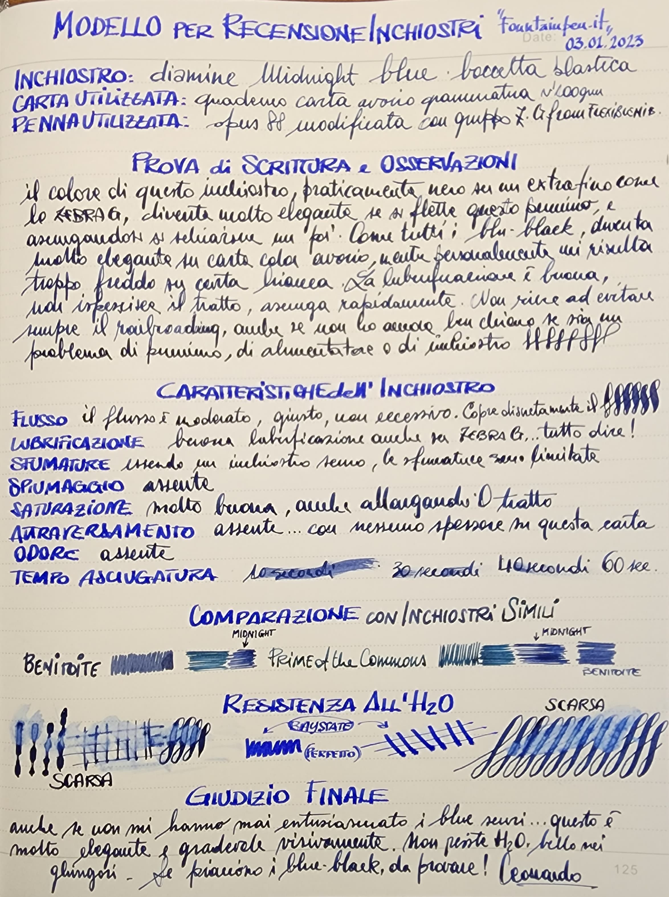 sto provando il midnight blu di diamine, che avevo messo via e non ricordo come va.