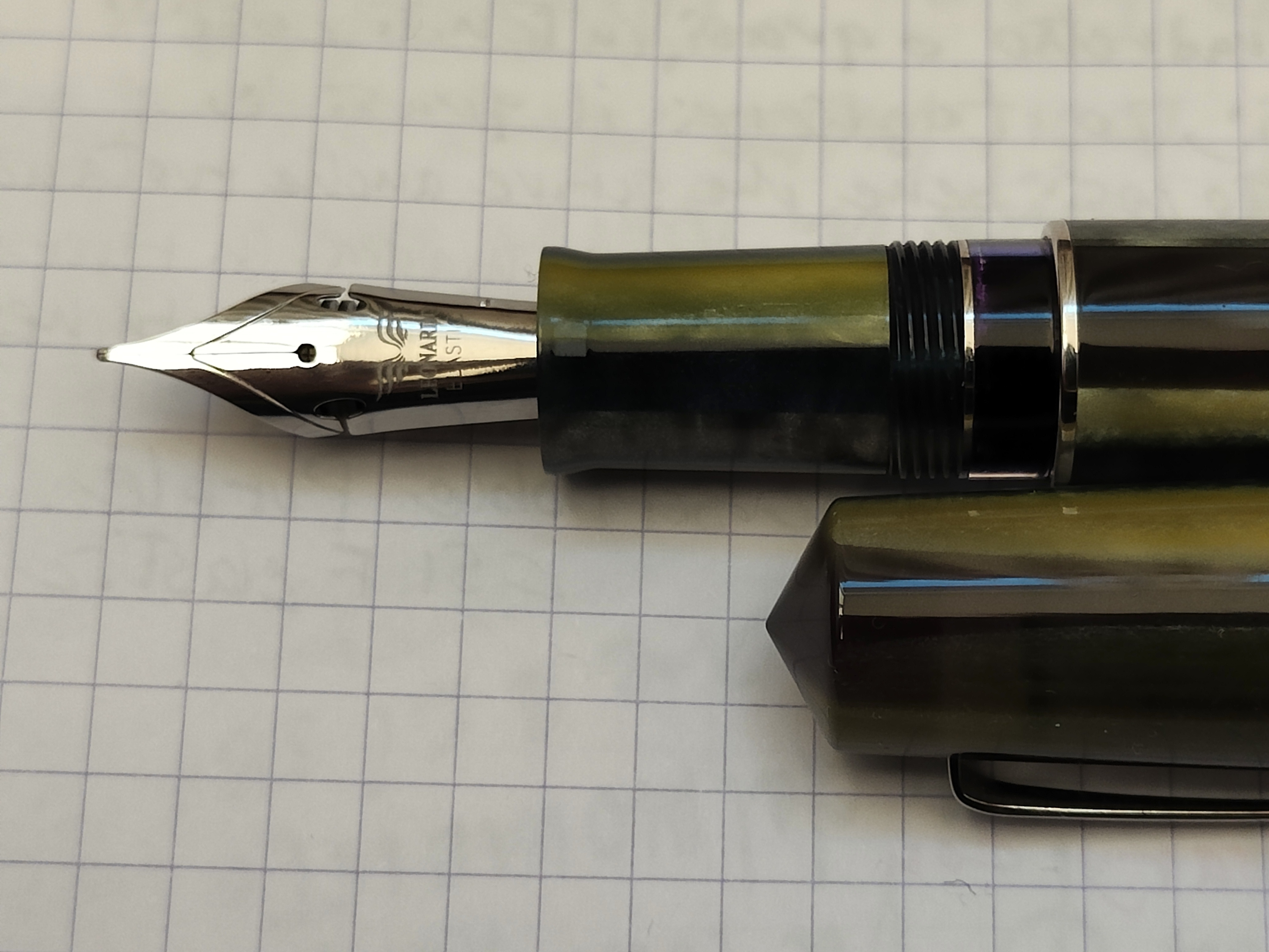 Qui parlerò dello stesso modello (per la descrizione rimando direttamente al link di cui sopra) nella versione Baobab con il nuovo pennino custom CSI F elastic in acciaio.