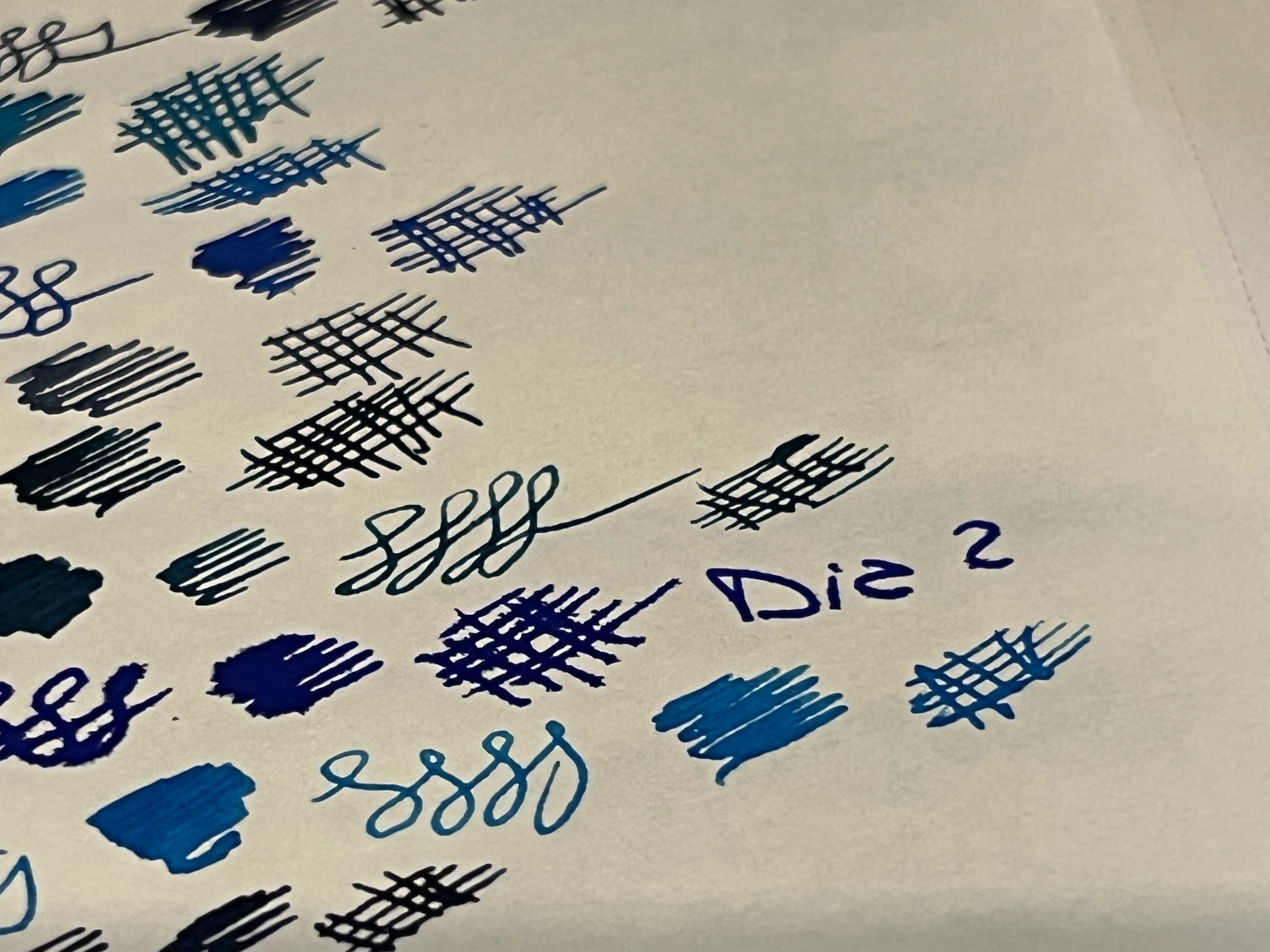 • Noodler's Baystate Blue: qui dimostra il suo peggio: spiuma, trapassa... ma sulla Dia 2 EF è perfetto. Il colore è unico, ma lo sappiamo tutti