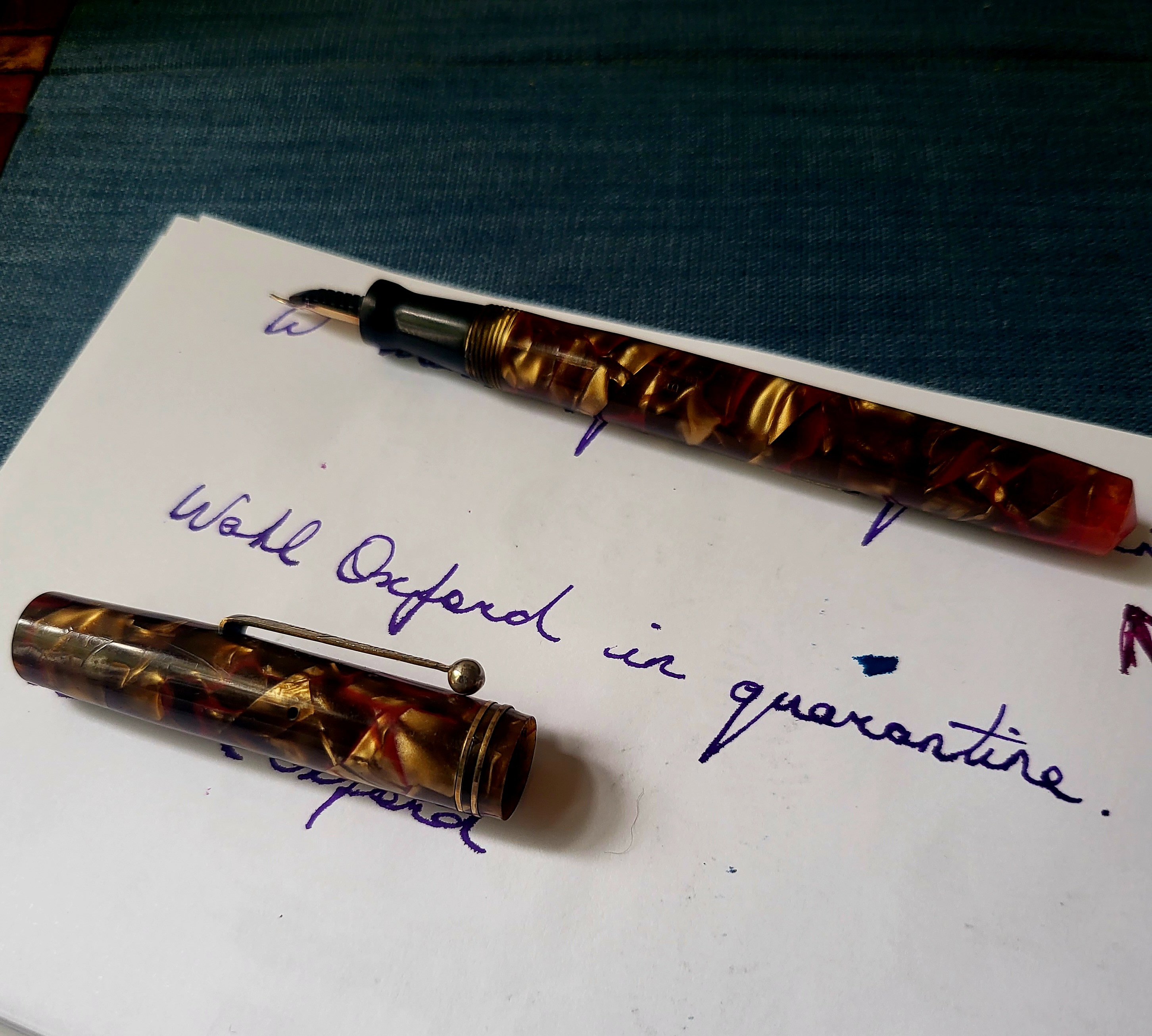 . Qualcun altro ha una penna di celluloide in quarantena? Si può notare il degrado all'estremità del fusto, ma la trovo ancora bellissima.