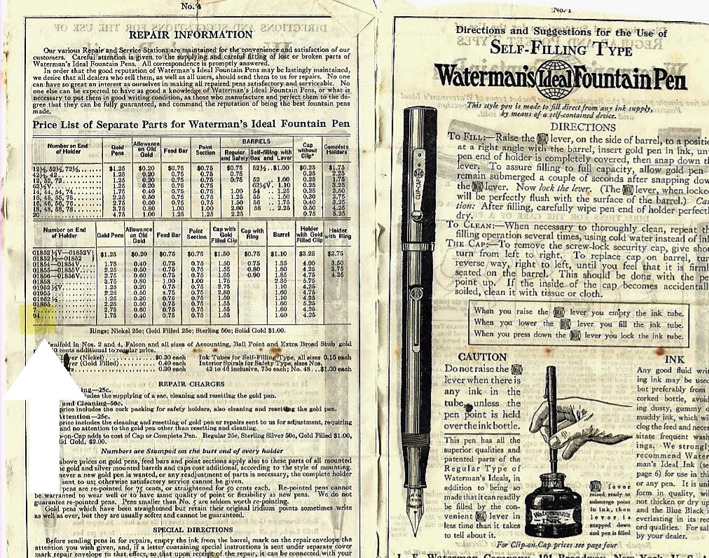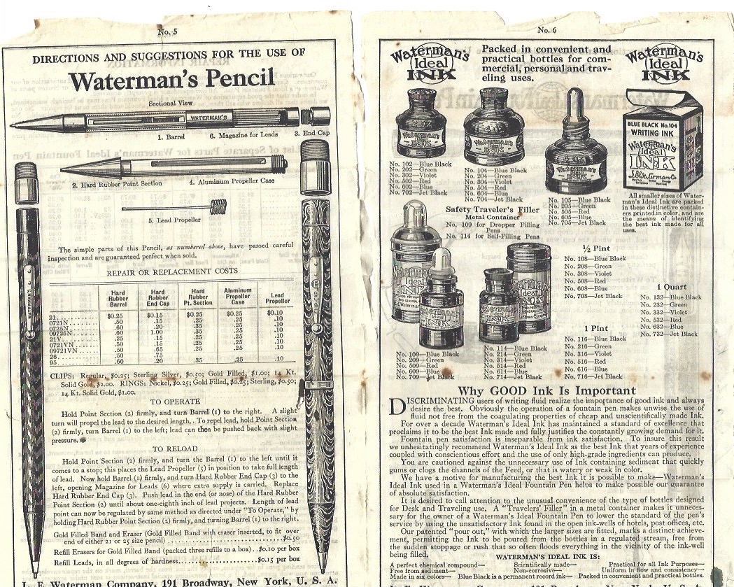 Forse due o tre anni dopo (1928), il foglietto almeno, visto che sono citati i ricambi per le Waterman 7 e 94 (ripple),