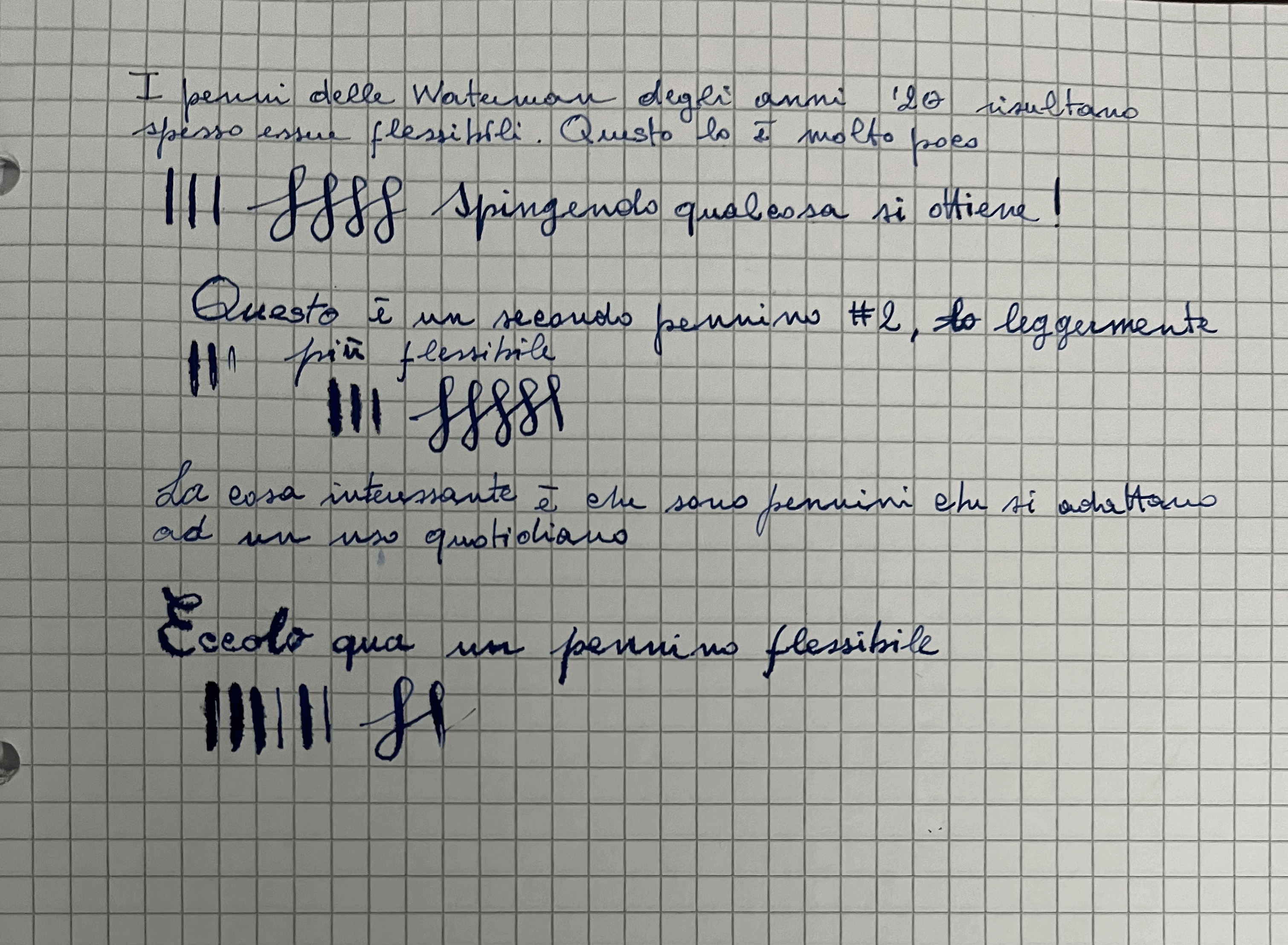 Ed infine una piccola prova di scrittura, la penna ha un bel pennino che scrive fine ma contrariamente a quello che ci si può immaginare è un pennino rigido, le altre due 52 hanno pennini più flessibili.
