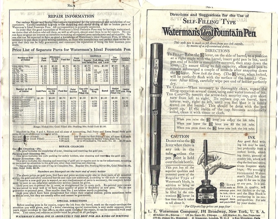 Forse due o tre anni dopo (1928), il foglietto almeno, visto che sono citati i ricambi per le Waterman 7 e 94 (ripple),