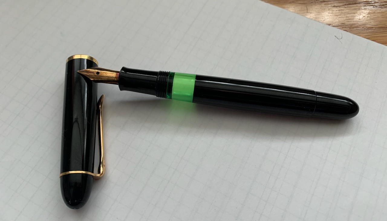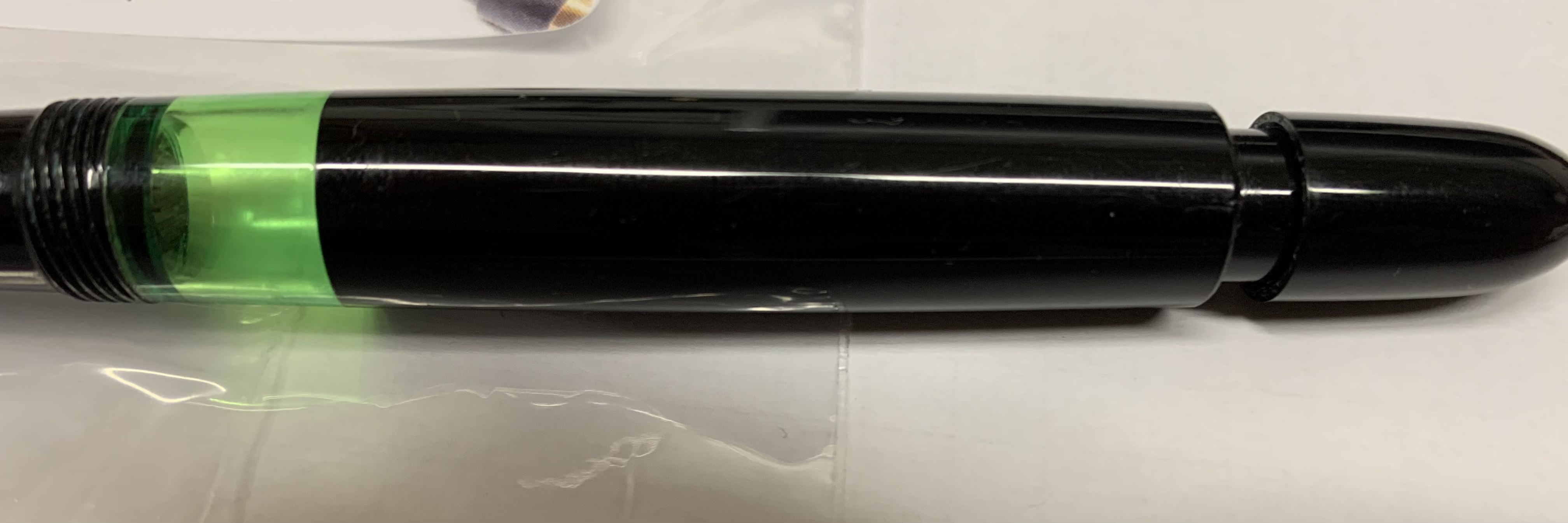 Come si vede dalle foto il pistone è parzialmente fuoriuscito dalla coda della penna. L'ho acquistata che era già così.