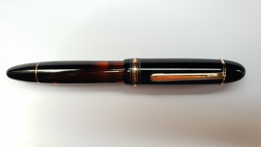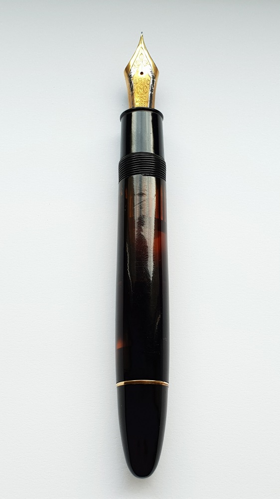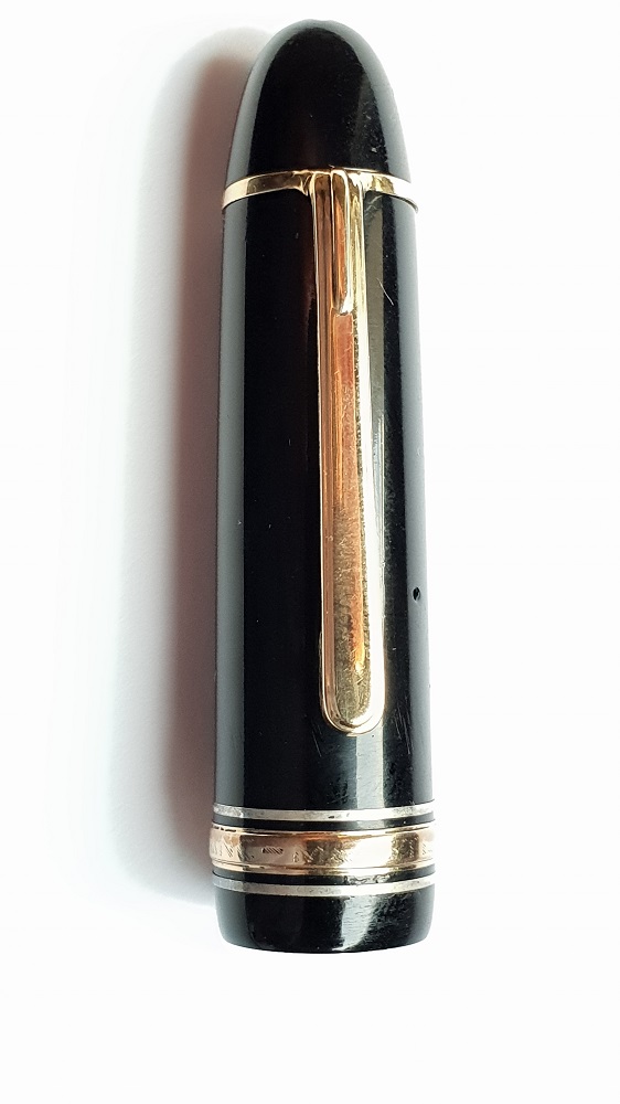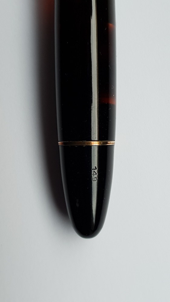 E' una 149 degli anni '50, una delle prime (se proprio le prime occorrerebbe vedere l'alimentatore sotto il pennino). E' in celluloide e con pistone telescopico. Anni luce superiore a qualunque 149 attuale...