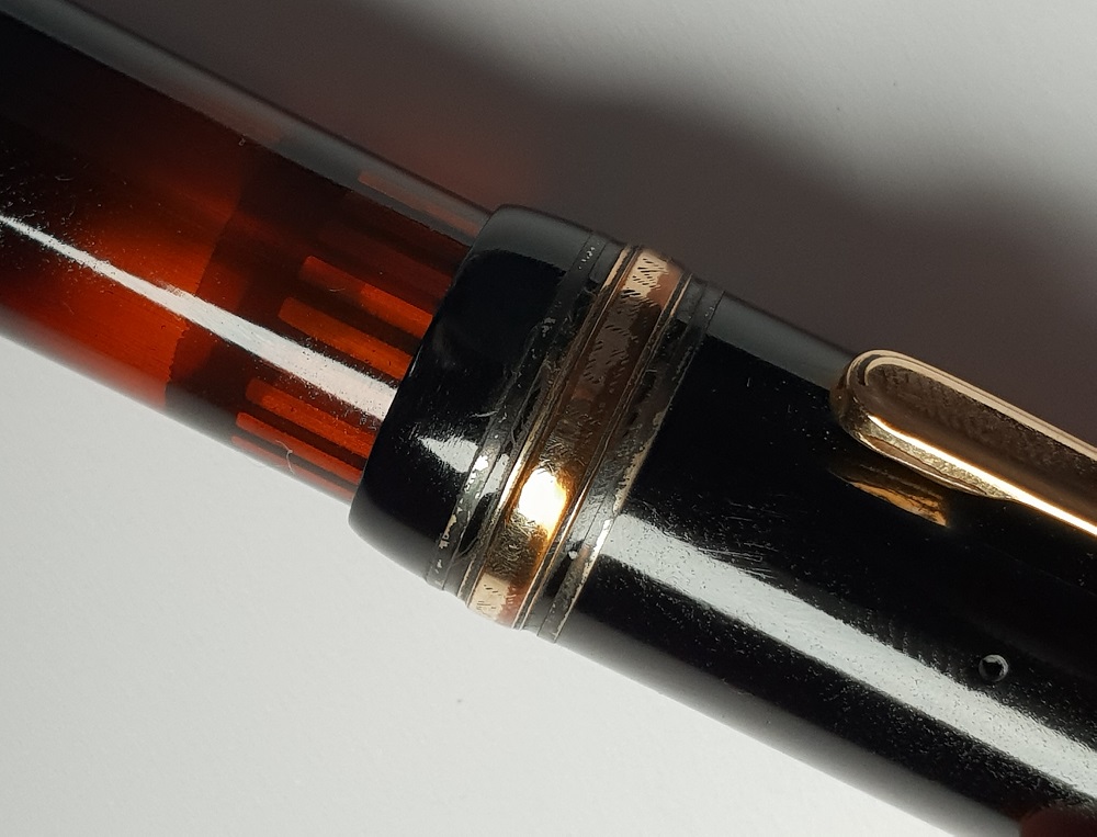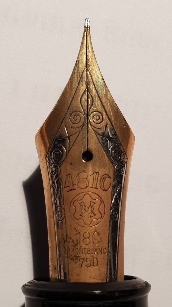 La Penna Stilografica Montblanc che vado a descrivere e di cui allego immagini mi è stata regalata dalla famiglia di un Ing. Prof. che mi ha seguito come supervisore esterno nella redazione finale della mia tesi di Laurea in architettura nel 1978 a cui è seguito il regalo nell'anno 1981. Lui era un Ingegnere molto capace e tengo a sottolineare questo in quanto la penna in oggetto è sicuramente un regalo fattogli, in quanto mi raccontò che alloraesistevano famiglie che avendo enormi disponibilità finanziarie finanziavano a fine di bene opere per lo sviluppo del Paese (da qui presumo che sia stato un regalo a lui fatto) e con la quale ha firmato innumerevoli suoi progetti importanti per il Paese. La utilizzava sempre, portandola con se. A testimonianza di questo si veda come è consumata la Marchiatura Montblanc sull'anello del cappuccio. Di questa scritta, per la lettura, ho fatto un filmato a luce radente, ma non è possibile caricarlo visto il suo peso di 94 Mb che ridotto in compressione è giunto a 10,4 Mb.