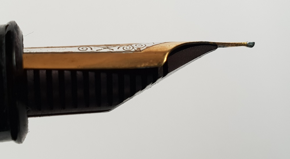 Il pennino non è stato cambiato ma aggiustato meccanicamente (leggermente raddrizzato) sulla punta in quanto presentava un accenno di incrocio.