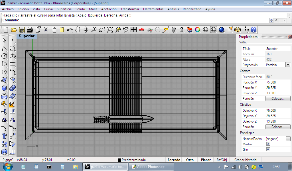 Quindi, con le poche foto che avevo, ho iniziato a progettare la stessa scatola in 3D con Rhinoceros per la successiva stampa 3D...