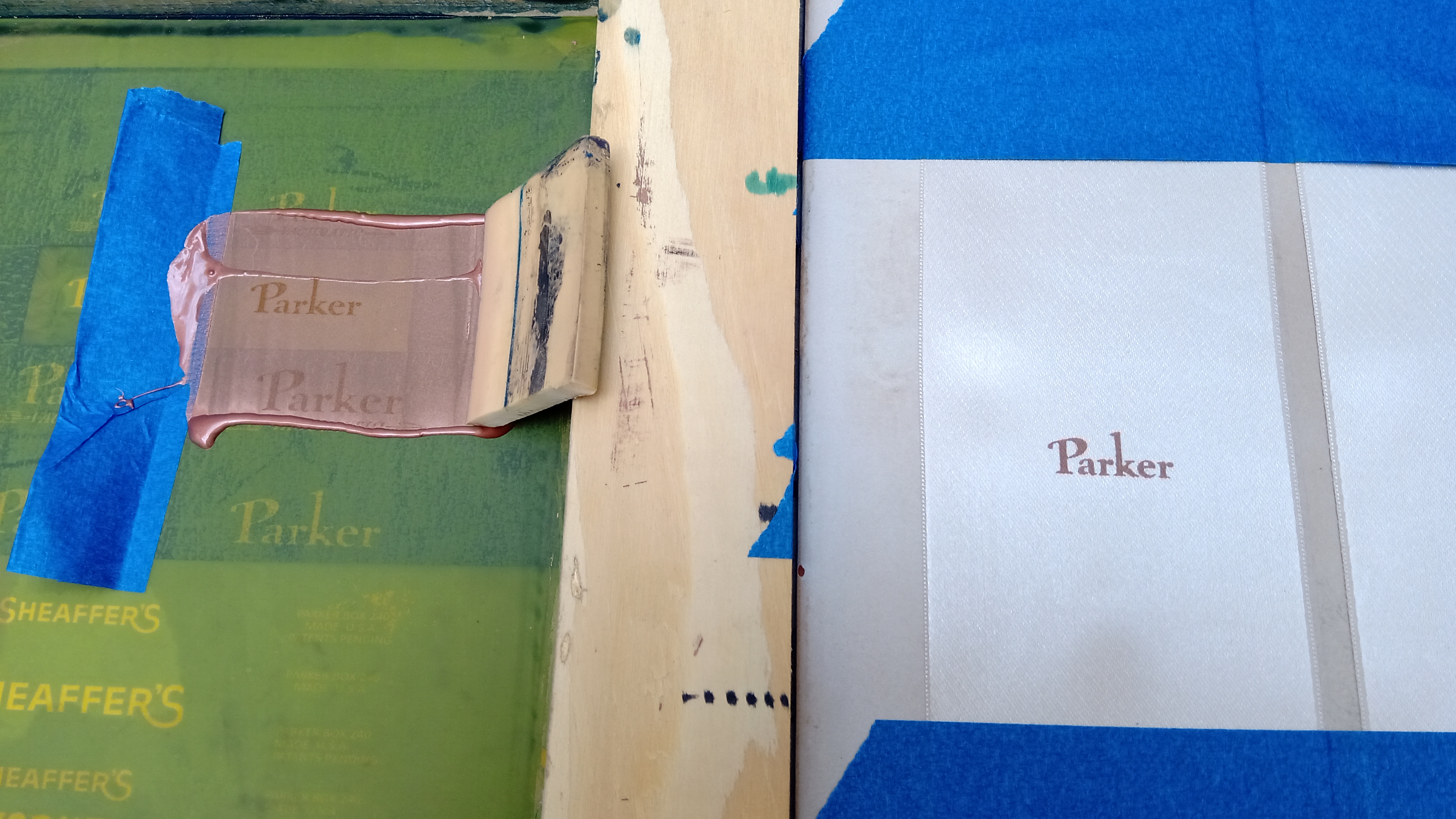 che ricopriremo con un cartoncino goffrato color borravino e sul quale abbiamo precedentemente stampato con inchiostro oro in serigrafia, il logo Parker e le etichette di base...