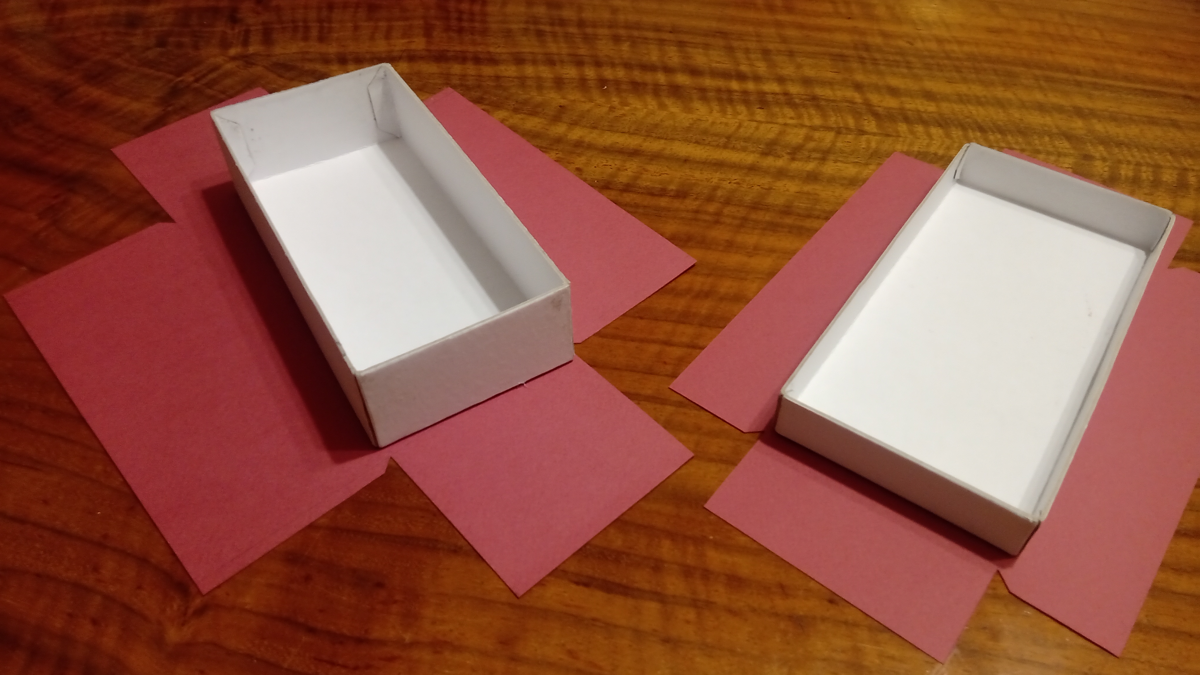 Iniziamo ora la costruzione della parte interna della scatola: una culla in cartone foderato in oro per il set penna più portamine, lati in cartone foderati in oro per il coperchio, e un retro per il coperchio satinato su cui verrà stampato il marchio. e modello...