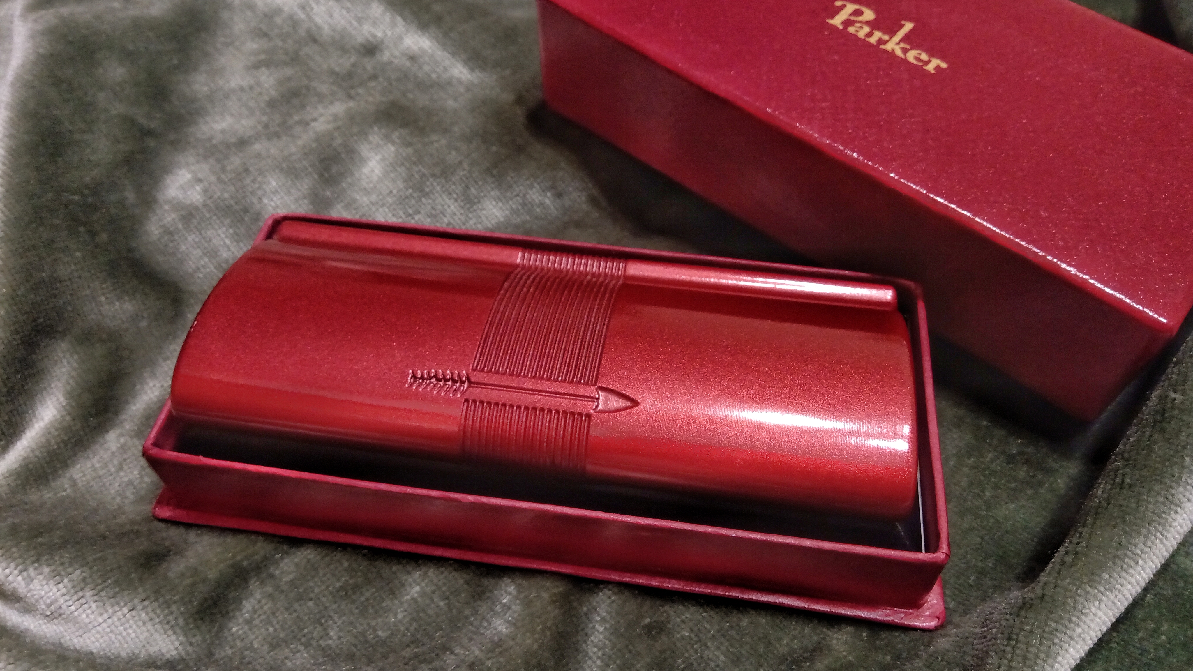 Tra le migliaia di diversi modelli di scatola che Parker aveva progettato e realizzato per le sue penne, aveva conosciuto questa scatola solo attraverso le foto, e le poche che erano state messe in vendita erano totalmente deformate.