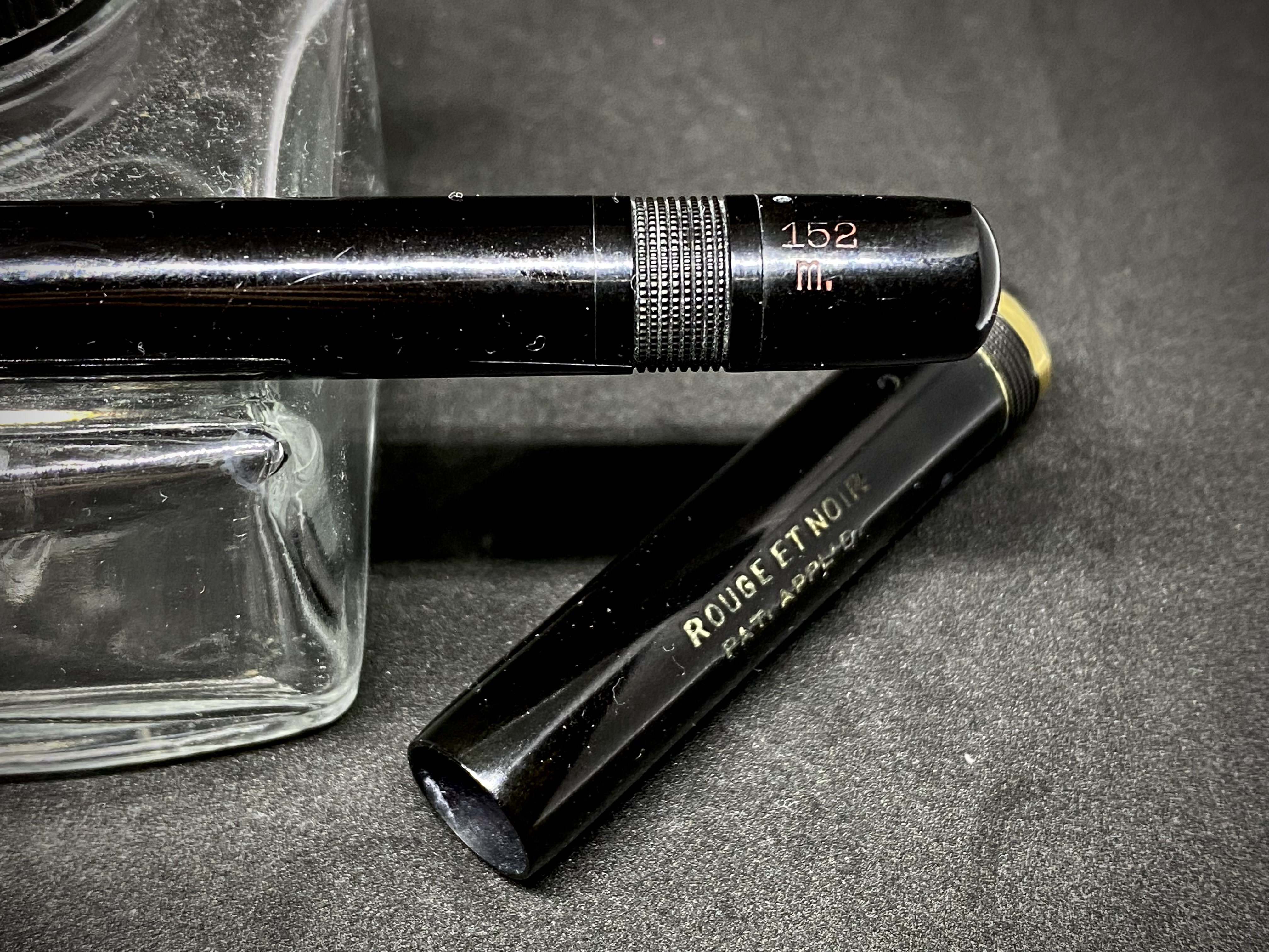 Uno degli ultimi ritrovamenti. Siamo agli albori della storia di Montblanc, il nome del marchio era ancora Simplo e il modello è una Rouge et Noir 152. Il raro esemplare in argomento monta uno dei primi pennini che Simplo si faceva produrre a New York misura nr 2 ed è stata prodotto tra il 1910 ed il 1912.