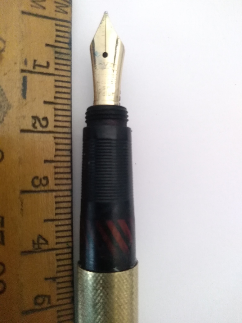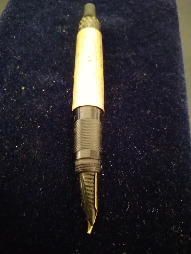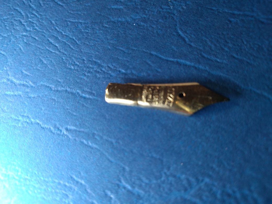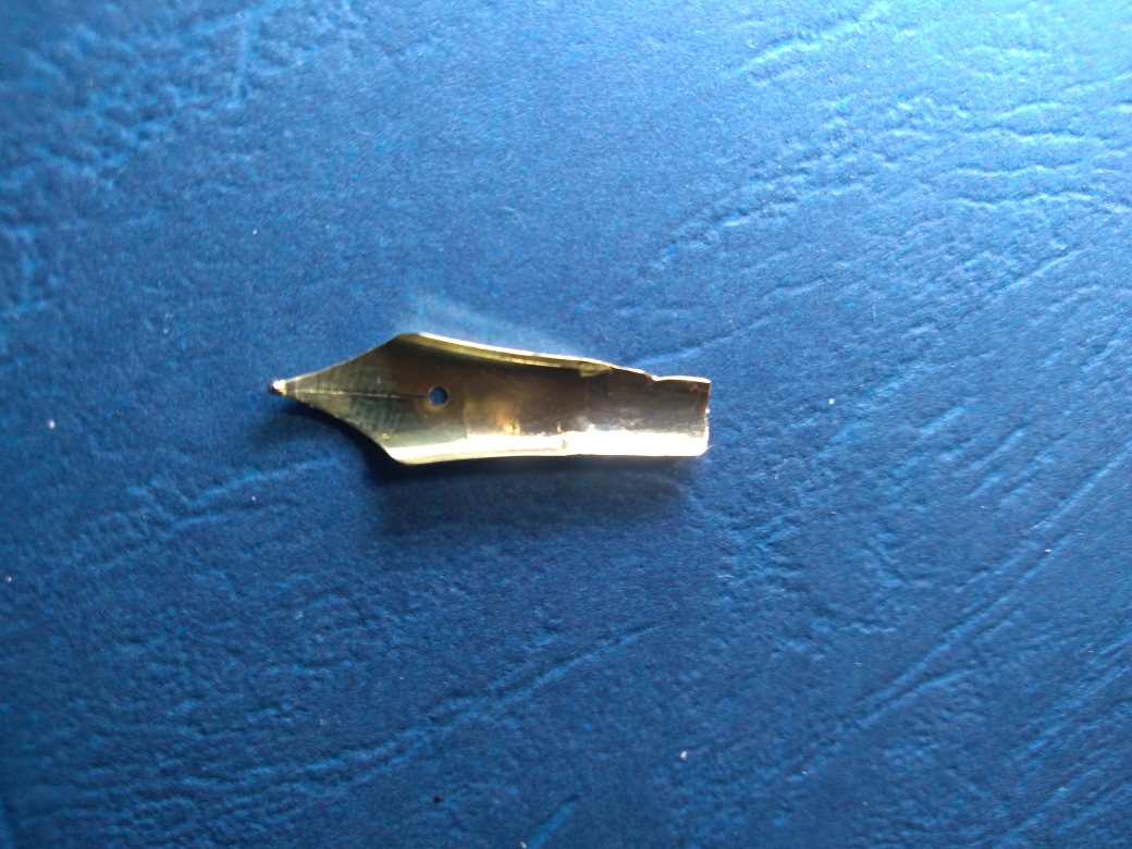 - pennino originale oro 14 ct.: saldato al colletto dove si era spezzato durante l'estrazione ( operazione gentilmente realizzata dall'artigiano che mi ha saldato il pennino della Waterman 42 )