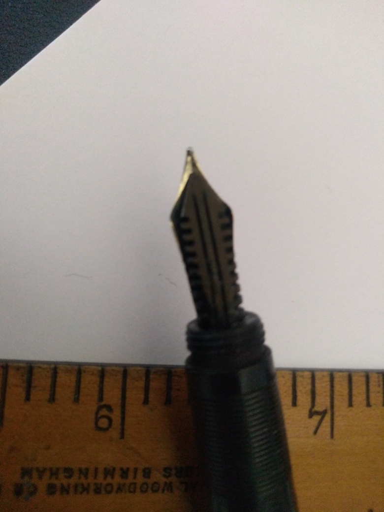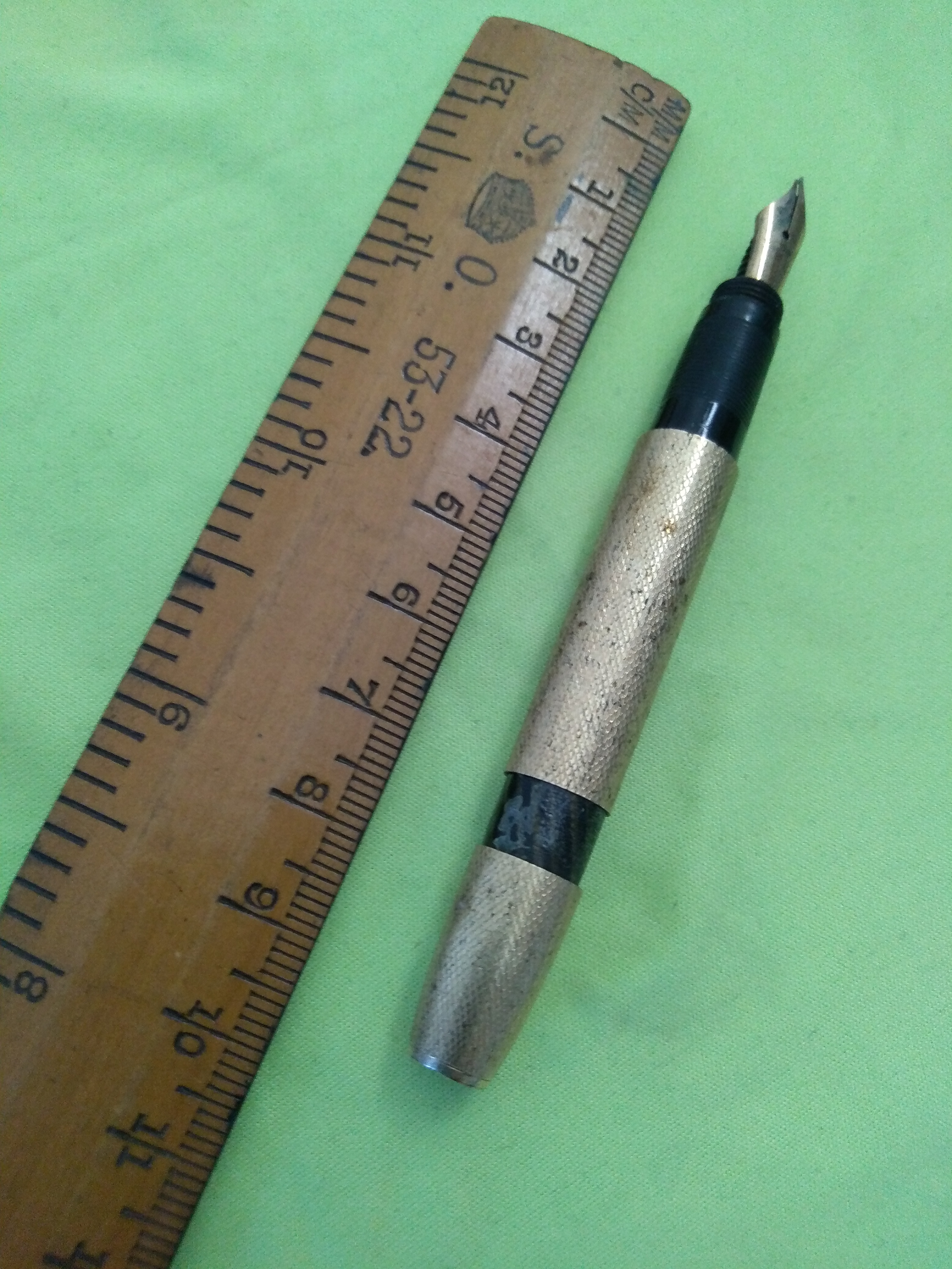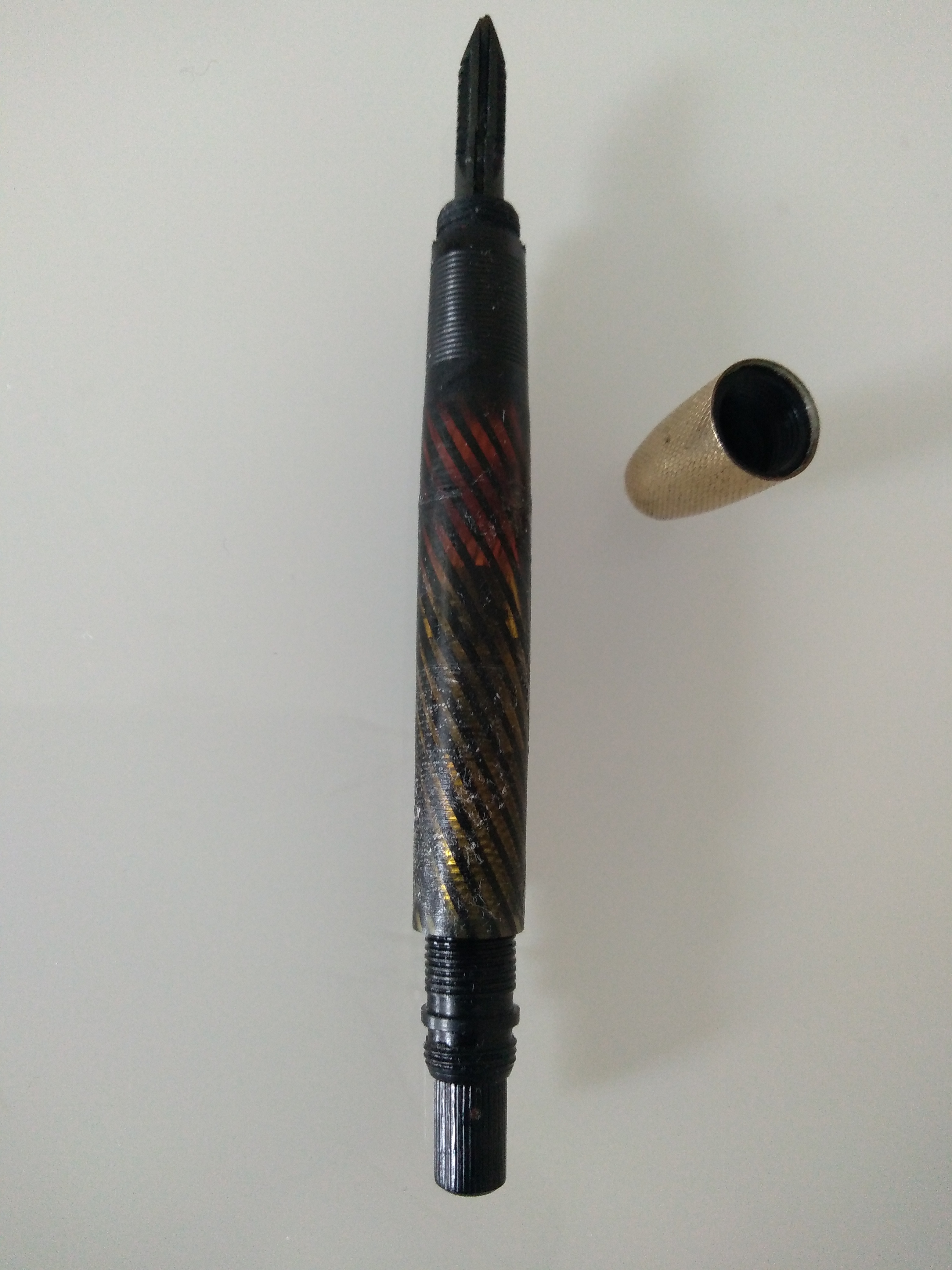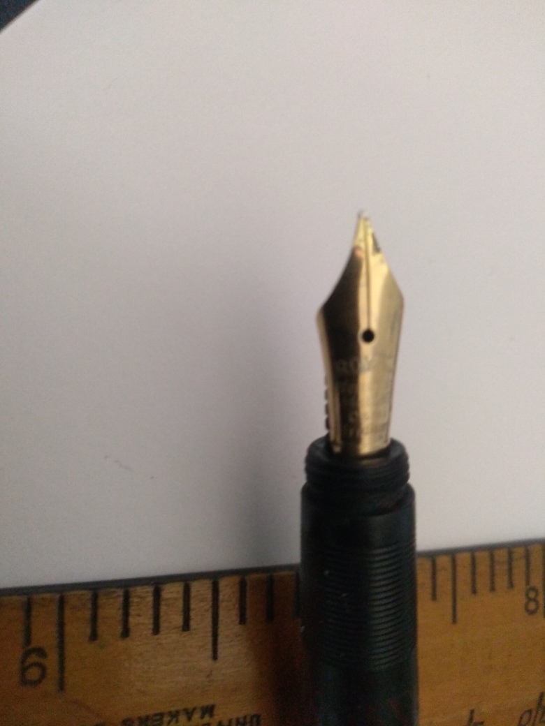 - pennino originale oro 14 ct.: saldato al colletto dove si era spezzato durante l'estrazione ( operazione gentilmente realizzata dall'artigiano che mi ha saldato il pennino della Waterman 42 )