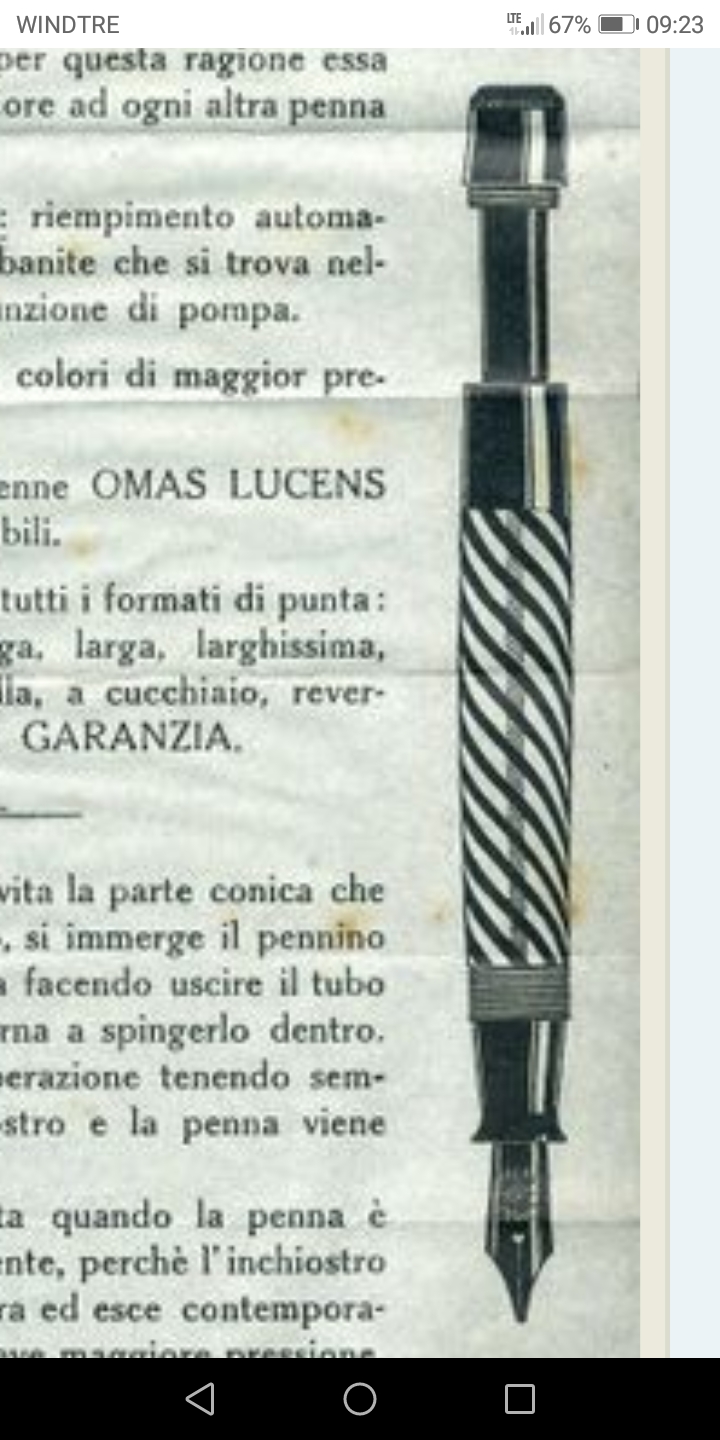 Esme, secondo te c'era qualcosa prodotto dalla Omas tipo il fusto e pistone della lucens? Gli anni sono gli stessi 38/40, , ho tolto il guscio e vedo molte somiglianze.Esme ha scritto: ↑domenica 2 aprile 2023, 17:33 Dunque, quando c'è una penna in cerca di identità a me parte la sindrome da Miss Marple.