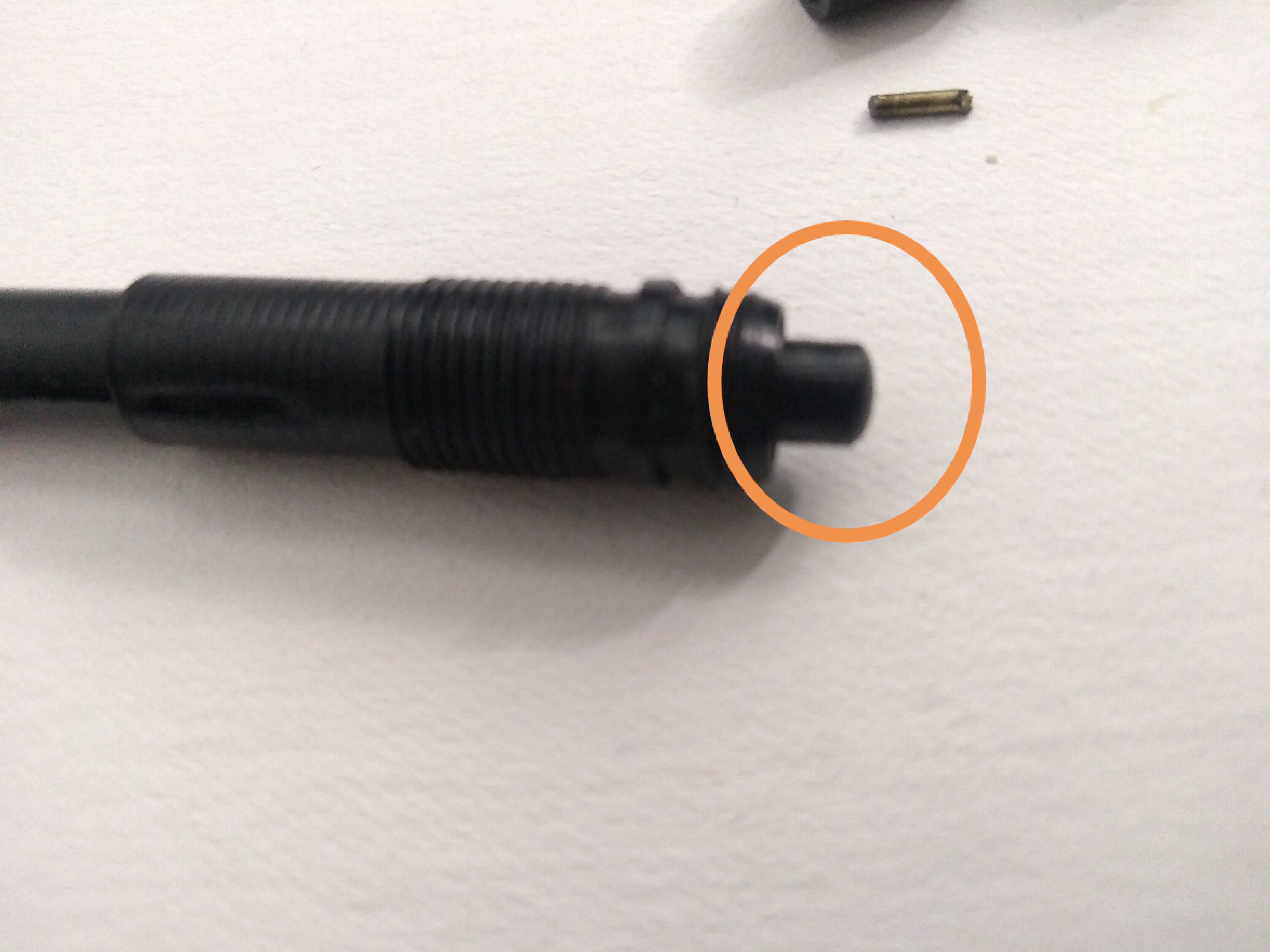 1) l'alberino del pistone è diviso in due sezioni di diametro differente, entrambe hanno un "solco" in senso longitudinale che farebbe presumere ad un inserimento in una guida, ma all'interno della sezione della penna non vi è nessuna guida;