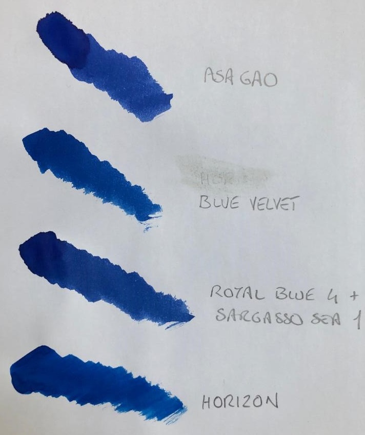 sansenri ha scritto: venerdì 14 aprile 2023, 20:55 Di sicuro esiste qualche inchiostro blu già pronto che somigli all'Asa Gao,