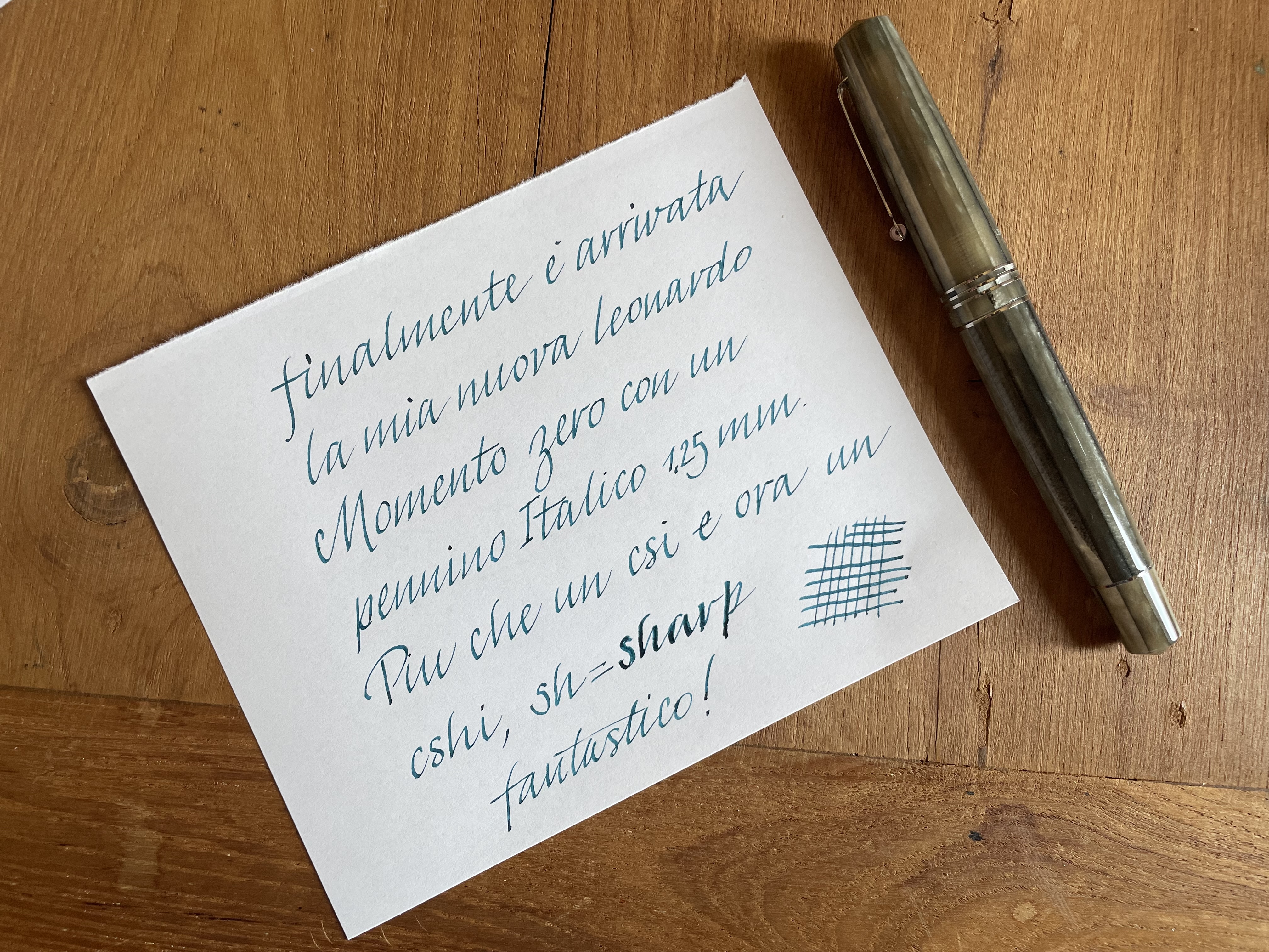 Dopo un veloce scambio di email, alla Leonardo si sono resi disponibili a customizzare una momento zero con pennino CSI B in un italico “tagliafogli” con uno spessore da 1,2mm.