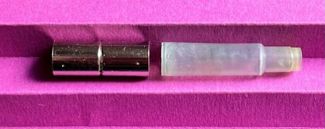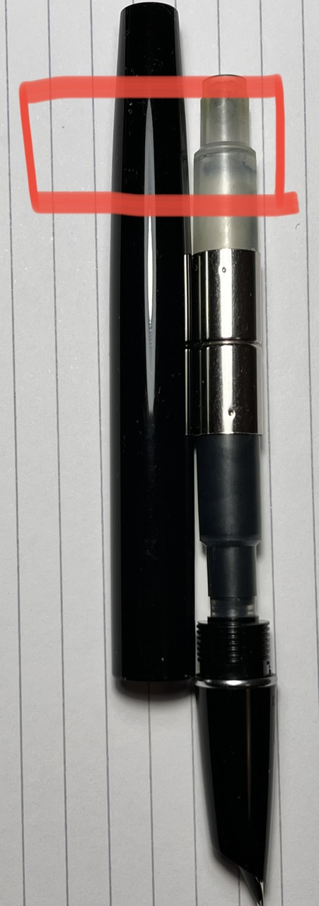 Buona domenica a tutti, ho rimesso in pista questa penna datami dallo zio. Sul cappuccio, d'orato, c'è scritto SAME, deduco sia una penna pubblicitaria. Ho riempito una cartuccia, decisamente sua visto l'imbocco, e visto che avevo un'altra cartuccia vuota e l'anello di metallo che le tiene insieme le ho lasciate attaccate ed ho provato ad avvitare il fusto che purtroppo non si avvita fino in fondo. Ho tolto la cartuccia vuota e lasciato l'anello di metallo ma anche così il fusto non si avvita fino in fondo. Le due cartucce e l'anello non sono le sue? Mi pare strano. A meno che non siano per la 888P, che pure posseggo ma che sta usando il converter Platinum?