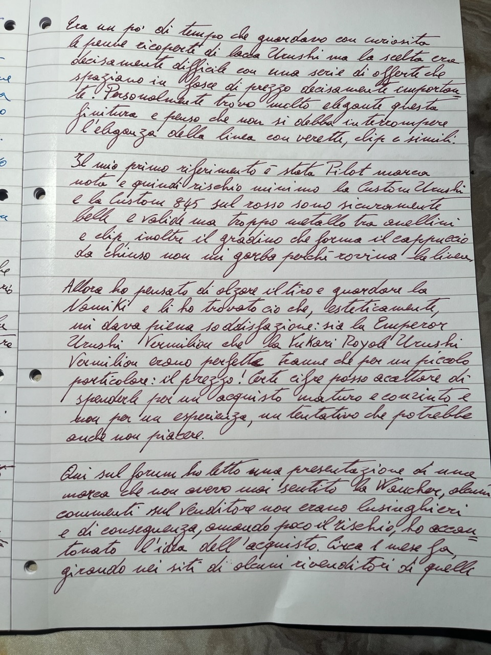 Sono veramente soddisfatto dell’acquisto ma temo che mi spingerà verso qualche altra Urushi, ma solo per capire le differenze :lol: