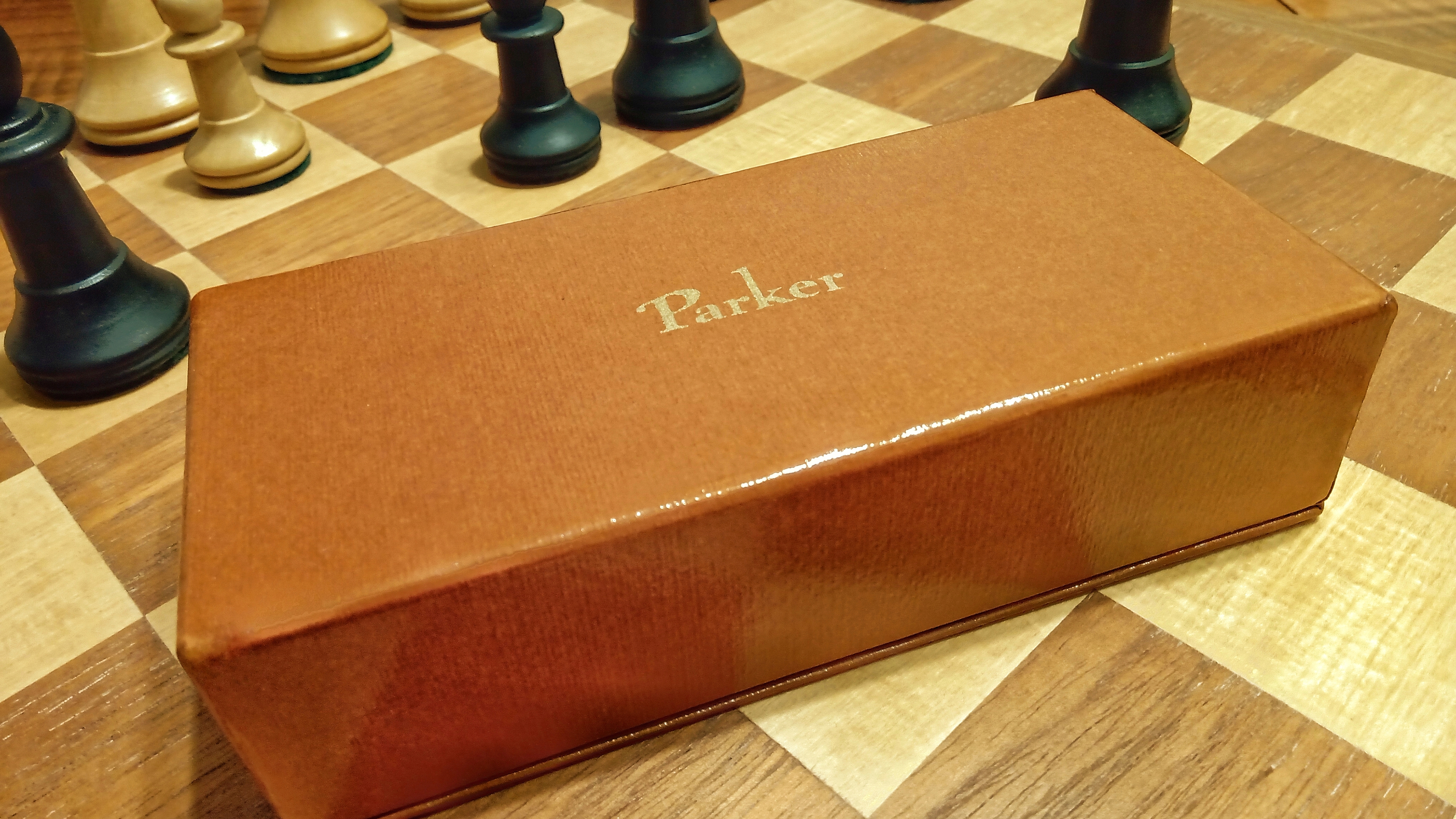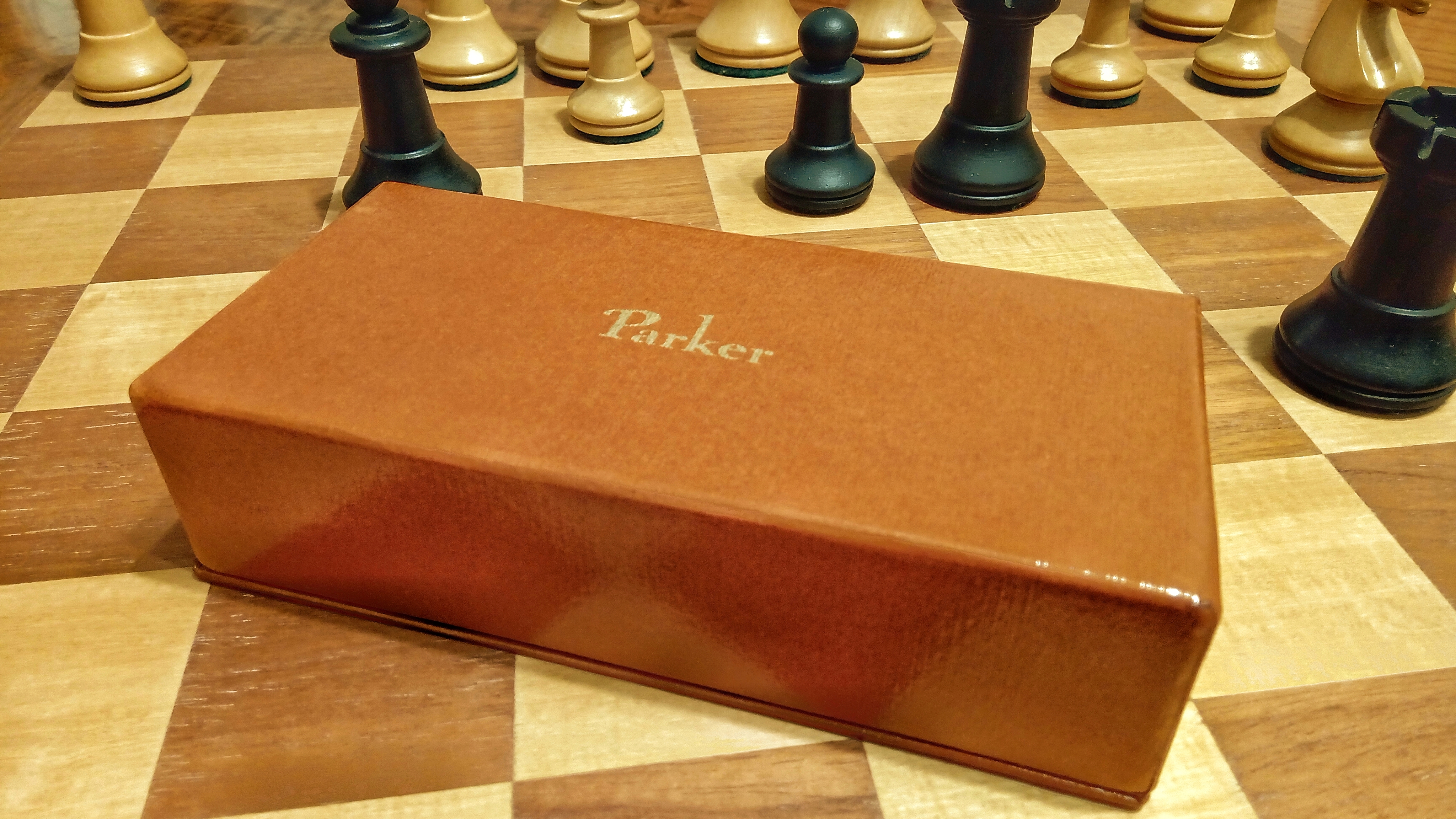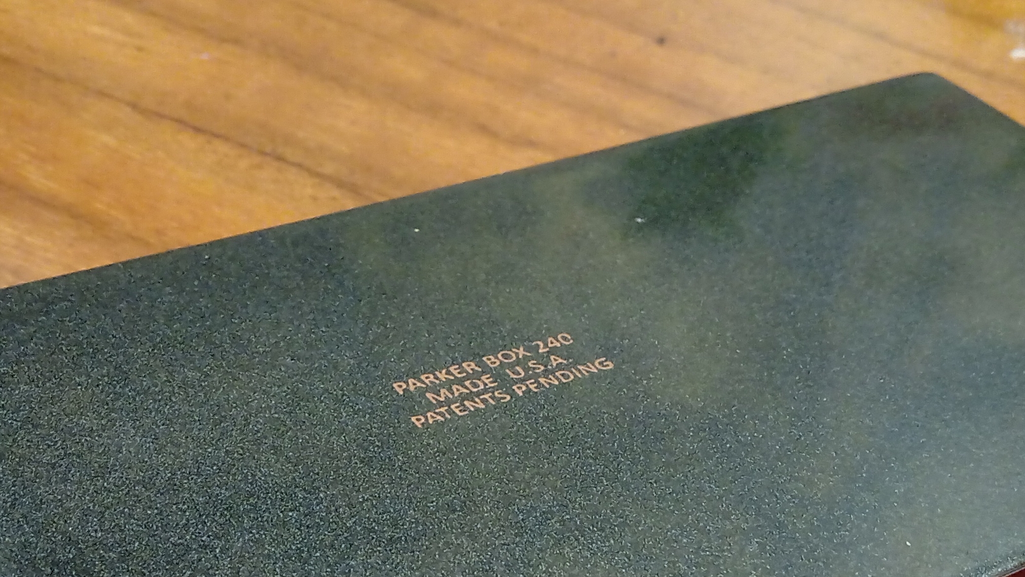 Per la scatola ho utilizzato un design Parker, che l'azienda utilizzava per i suoi modelli Vacumatic di lusso, e che all'epoca era già stato utilizzato in un altro set vacumatic con una matita meccanica...