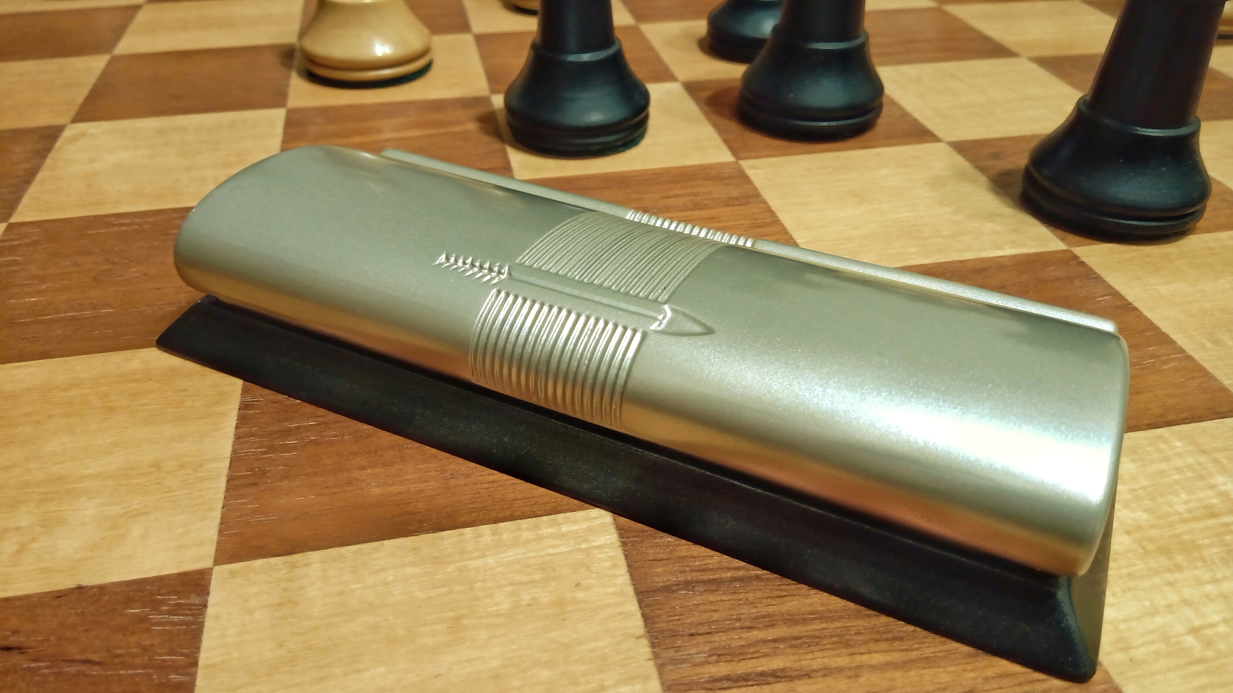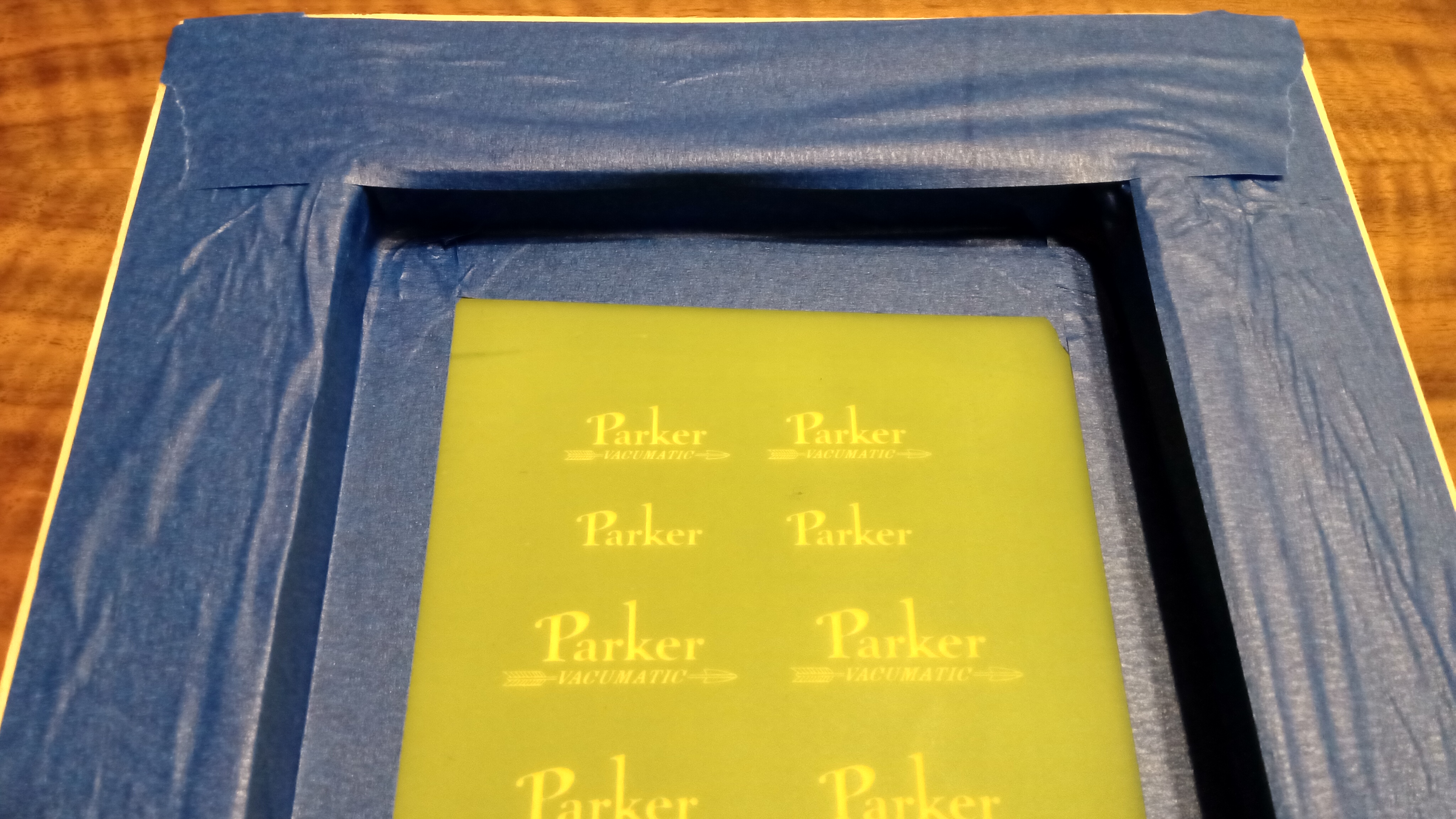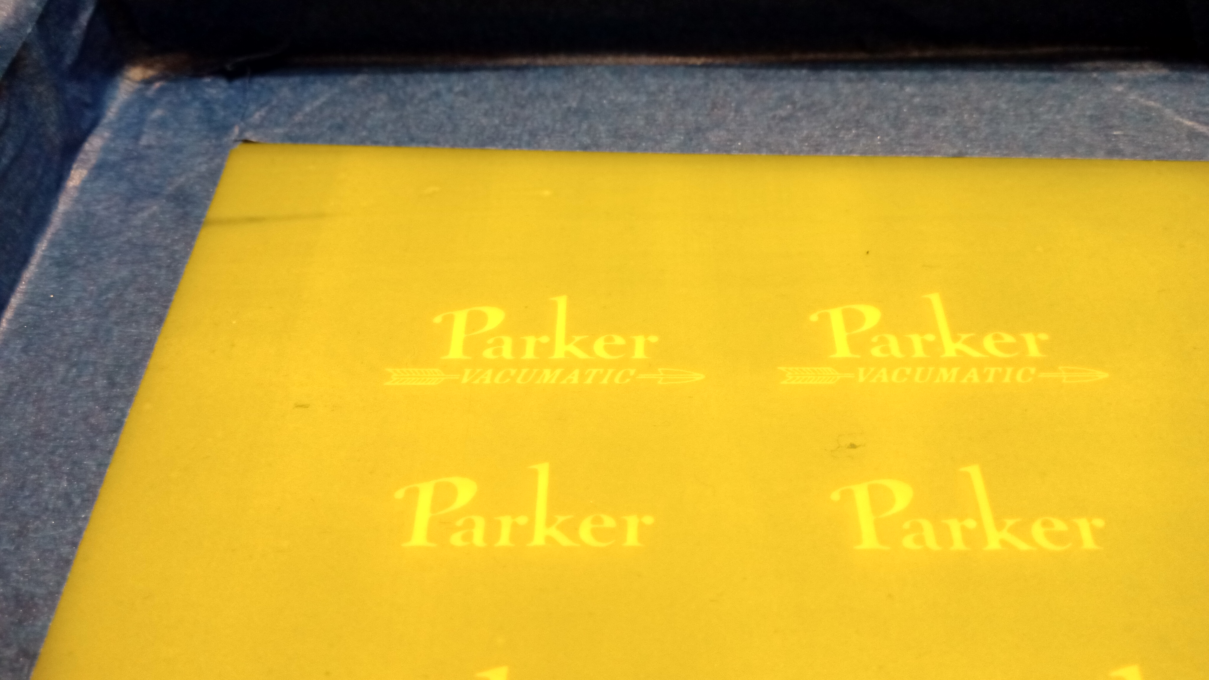 Per la scatola ho utilizzato un design Parker, che l'azienda utilizzava per i suoi modelli Vacumatic di lusso, e che all'epoca era già stato utilizzato in un altro set vacumatic con una matita meccanica...