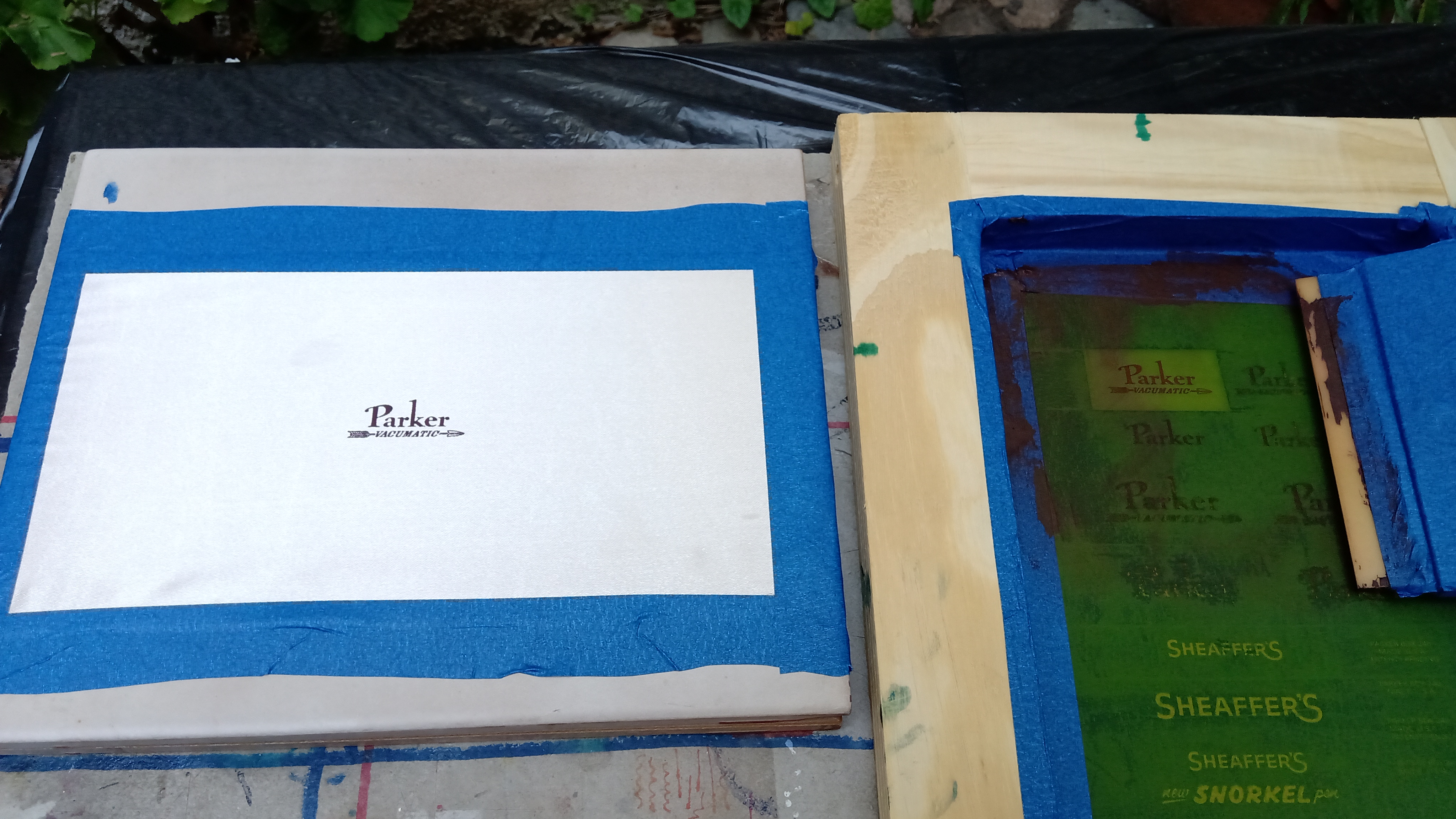 Stiamo ora preparando i loghi da stampare sui tessuti interni, scatola di cartone, telo protettivo e base della scatola, che verranno copiati su uno shablon da stampare con inchiostro vinilico in sistema serigrafico, a partire dal tessuto di rivestimento interno...