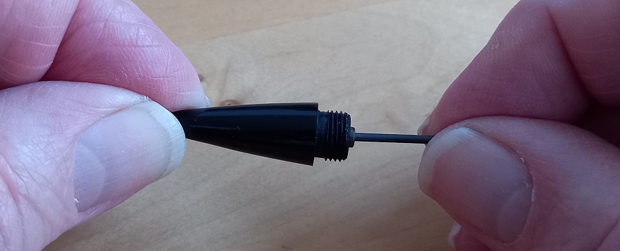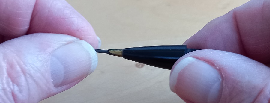 Per far sì che la mina stia tutta dentro al puntale l'ho dovuta spezzare a metà.