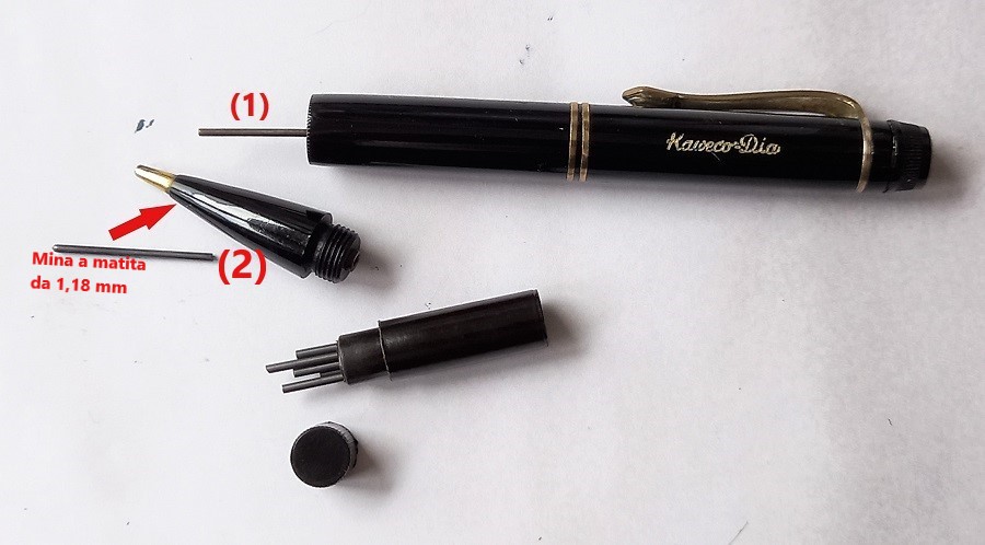 È possibile inserire una piccola mina da 1,18 mm dalla parte anteriore o, se si svita la parte anteriore, dalla parte posteriore.