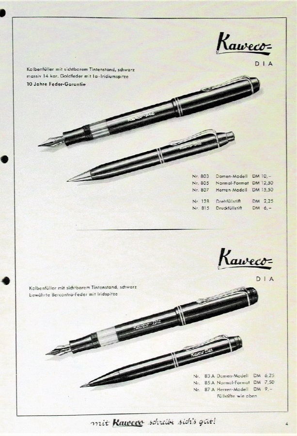 Ecco una brutta foto di una pagina del catalogo Kaweco, con i modelli Kaweco Dia, del 1954.