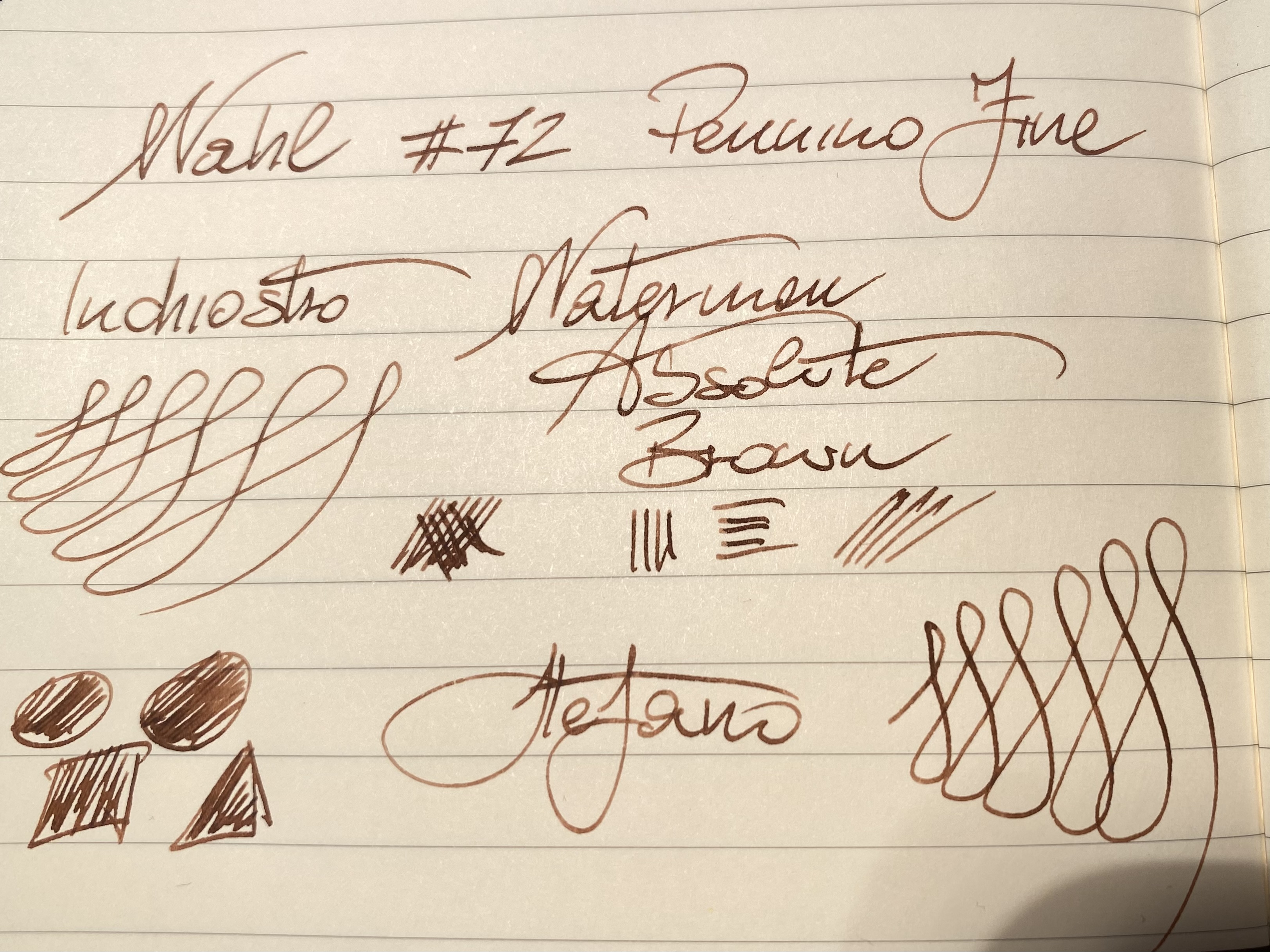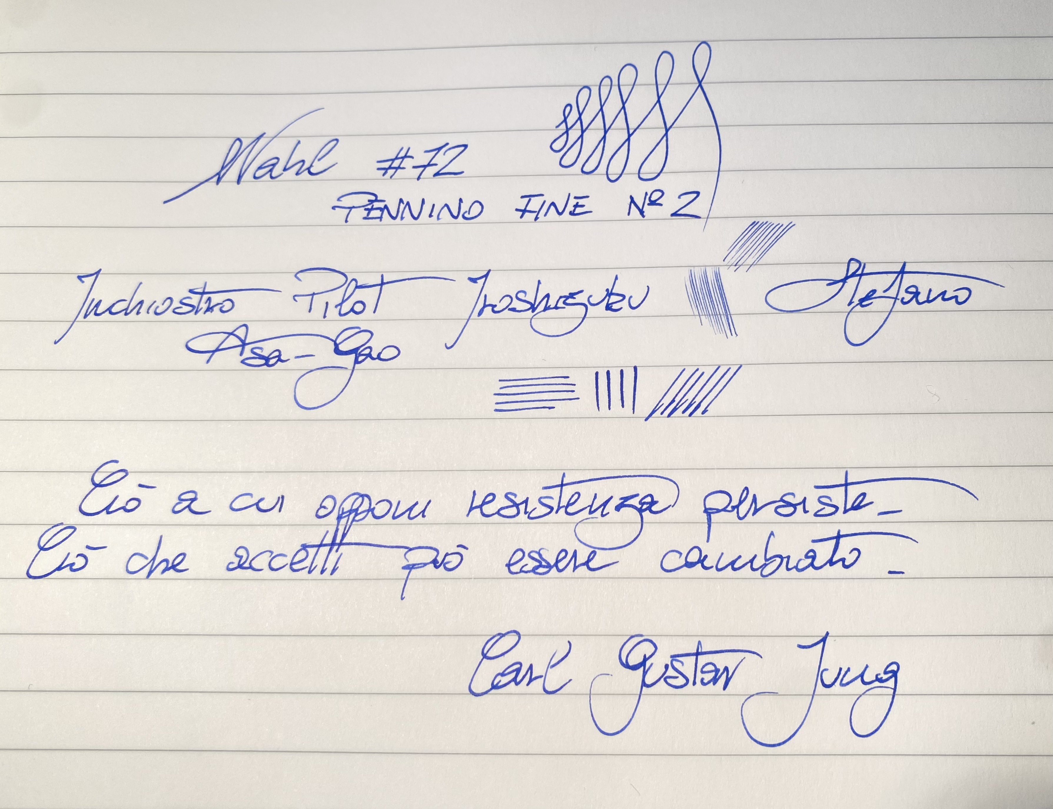 Credo, ad occhio e lente, che l’iridio sia un po’ passato… ora ci provo un waterman ed un kwz, con gli herbin è peggio… altrimenti il solito diamine copper (che se continuo così sta su 11 penne su 13!francoiacc ha scritto: ↑venerdì 26 maggio 2023, 12:47 In genere ho trovato le Wahl sempre delle ottime penne anche sotto il profilo delle performance di scrittura. Ovviamente pero', quando si parla di penne con un centinaio di anni sul groppone si deve mettere in conto che il pennino puo' avere un suo bel vissuto e i fattori da considerare sono tanti quali, consumo dell'iridio, la mano con cui ha scritto, condizioni del conduttore, deformazioni etc.