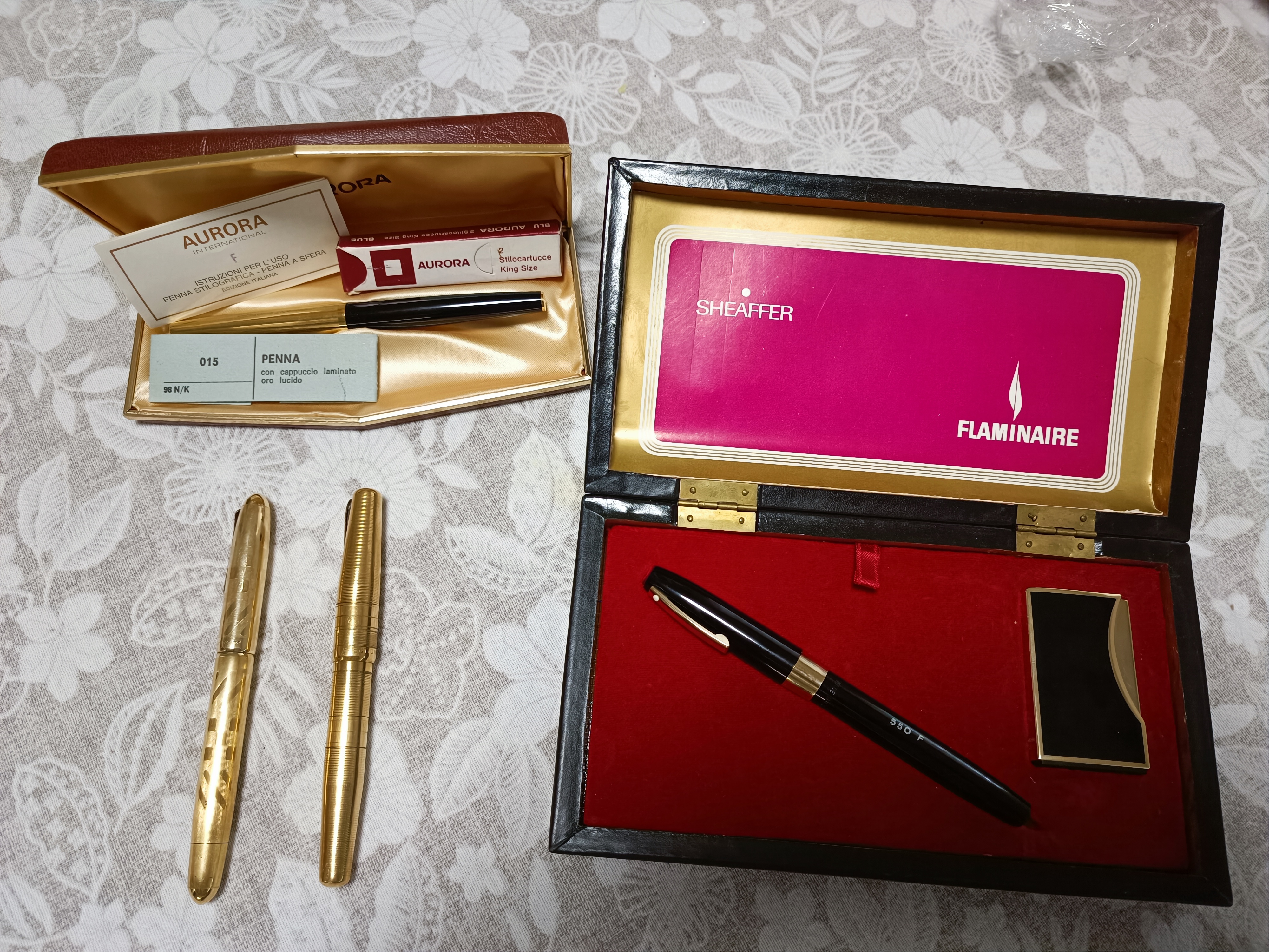 Ho cominciato a cimentarmi nel loro restauro e conto di riportarle in vita entro questo mese, assieme a tre Aurora (88P che non si svita, una 98 e una Magellano), una Sheaffer Imperial 550 e una Waterman Torsade che non hanno bisogno di grandi interventi.