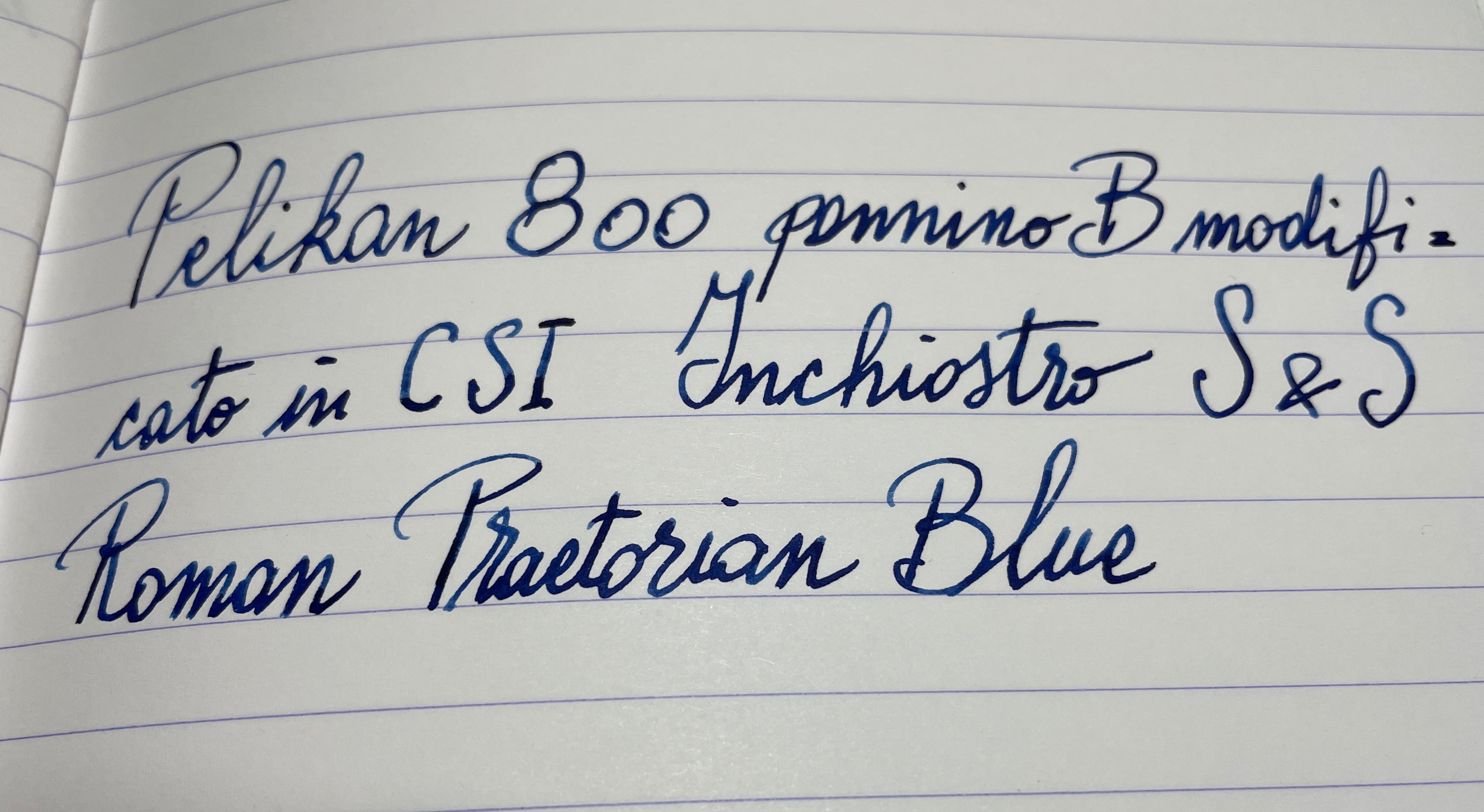 Circa l’inchiostro di Stilo & Stile ho esperienza di un altro colore della stessa serie, che adoro tra l’altro: il Roman bronze oxydation. Se il Roman praetorian blu si comportasse in modo simile, mi piacerebbe. Questo però “al litro” (passatemi il termine) è più caro dei Diamine, volendo valutare proprio tutti gli aspetti.