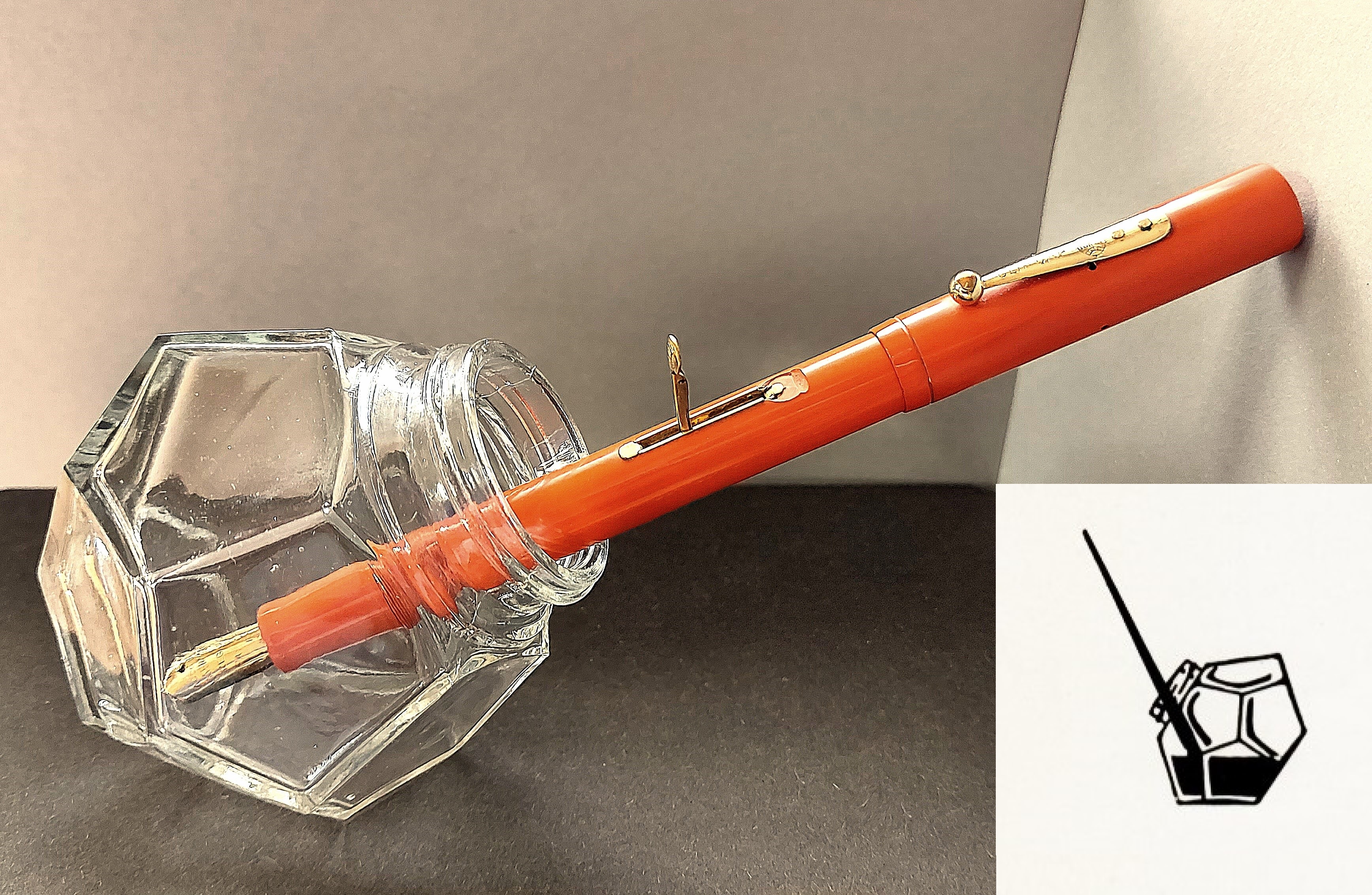 La situazione era stata complicata dalla Waterman stessa, che aveva avviato anzitempo la dismissione (inopinata, vista la loro grande bellezza ed eleganza) dei calamai su stelo a forma di “globo” (o “cardioide”), prodotti in cinque varianti successive a partire dal 1912, e destinati alle penne con caricamento “automatico” (ossia, dopo il 1915 in casa Waterman esclusivamente alle lever filler), rimanendo così già all’inizio degli anni Trenta senza una vera alternativa commerciale alla ormai “sorpassata” impostazione cilindrica.